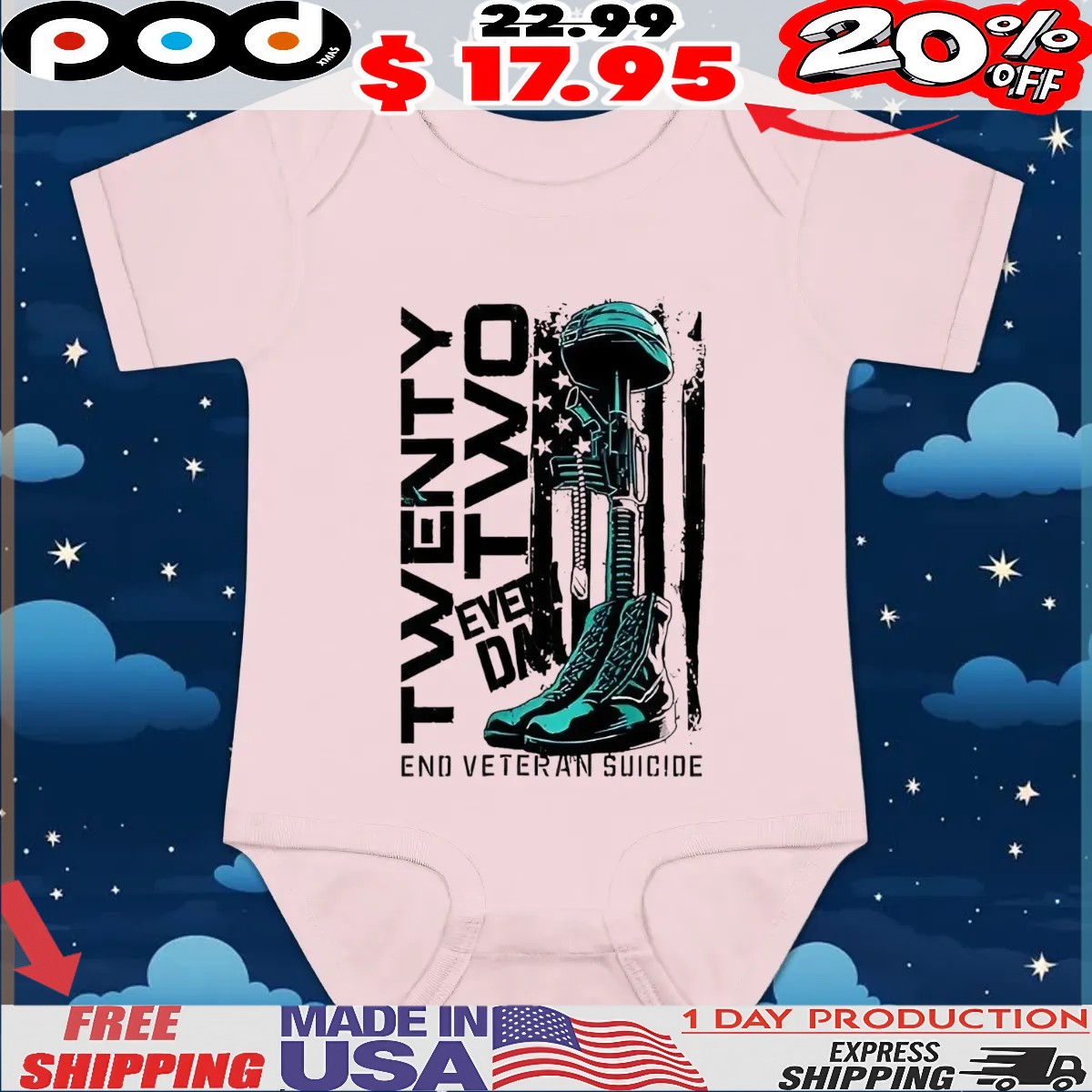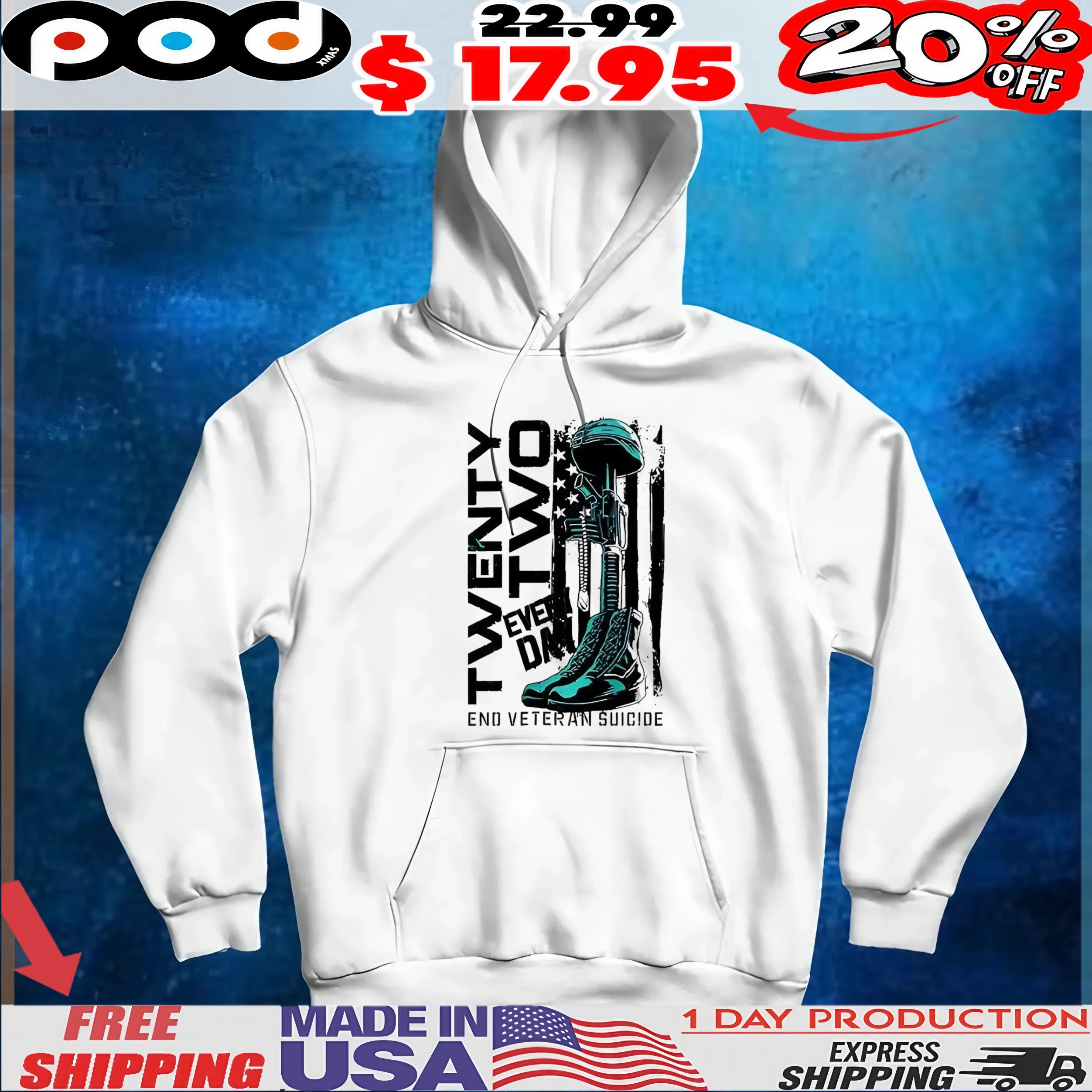 Honor those who have served while promoting awareness with our "22 Everyday End Veteran Suicide Flag T-Shirt." This powerful and meaningful t-shirt is not just a piece of clothing; it’s a statement of support for veterans and an essential element in the fight against veteran suicide. By wearing this shirt, you join a movement that aims to create conversations and foster understanding around this critical issue.