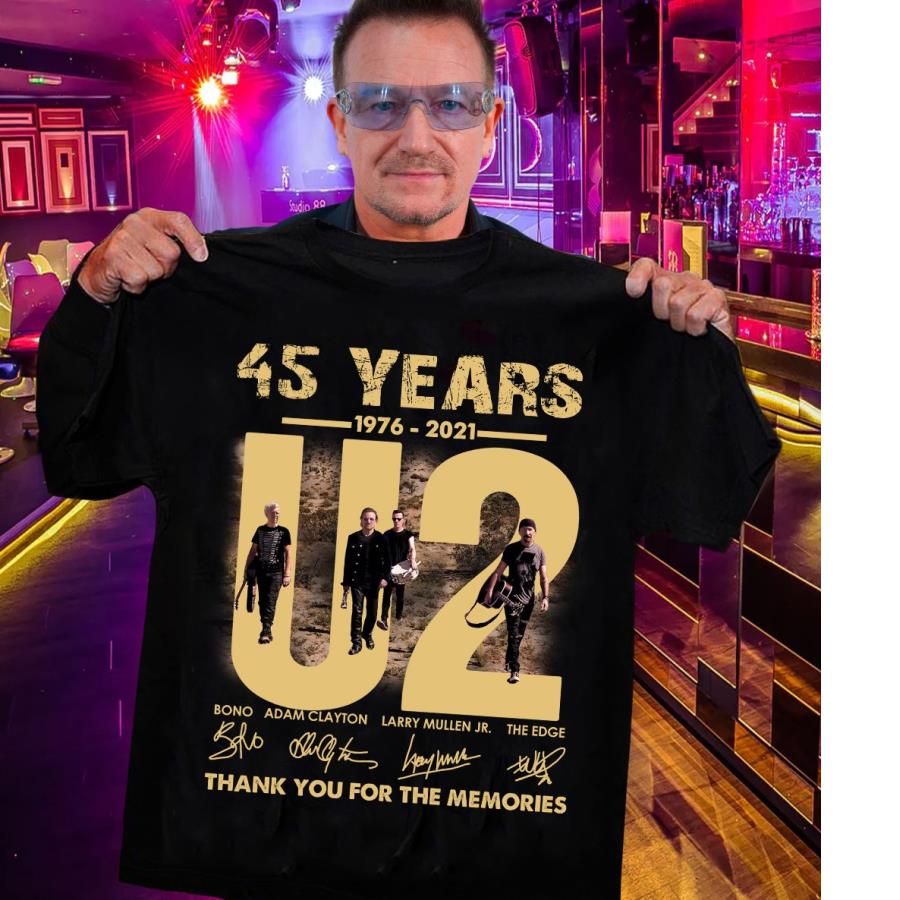 45 years 1976 2021 U2 Bono Adam Clayton Larry Mullen Jr. The Edge signatures thank you for the memories shirt