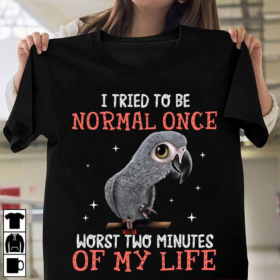 African grey parrot I tried to be normal once worst two minutes of my life shirt, hoodie, tank top, sweater and long sleeve t-shirt