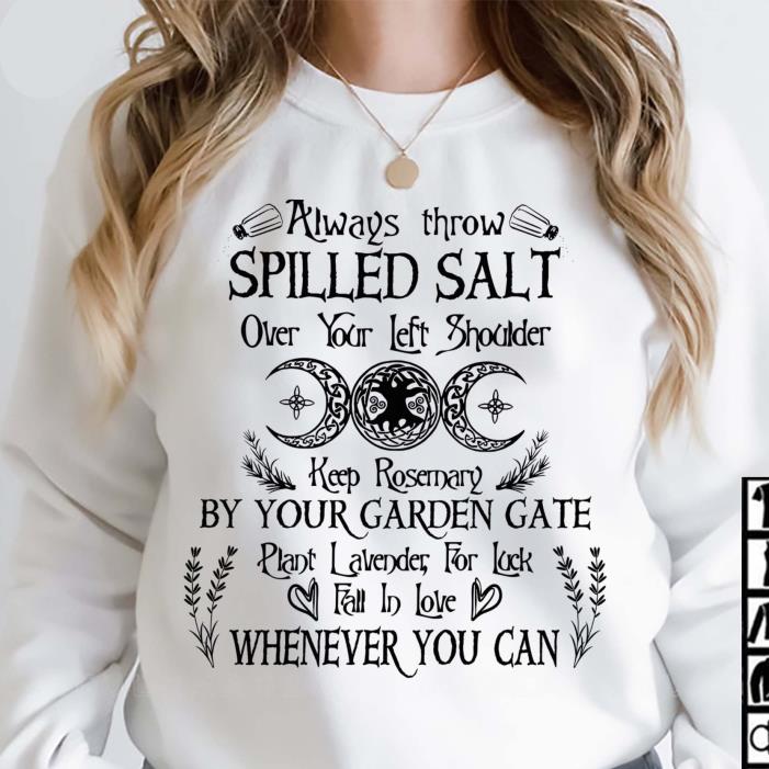 Always throw spilled salt over your left shoulder keep rosernary by your garden gate plant lavender for luck fall in love whenever you can sweatshirt, hoodie, tank top, sweater and long sleeve t-shirt