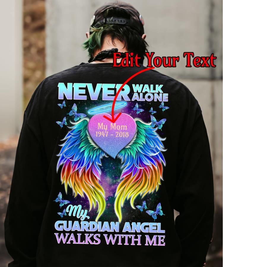 Angel Never Walk Alone My Guardian Angel walks With me Custom Mom Memorial shirt, hoodie, tank top, sweater and long sleeve t-shirt