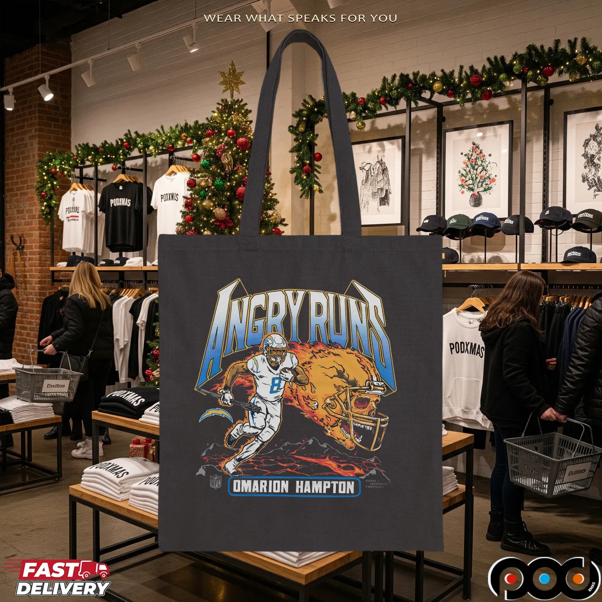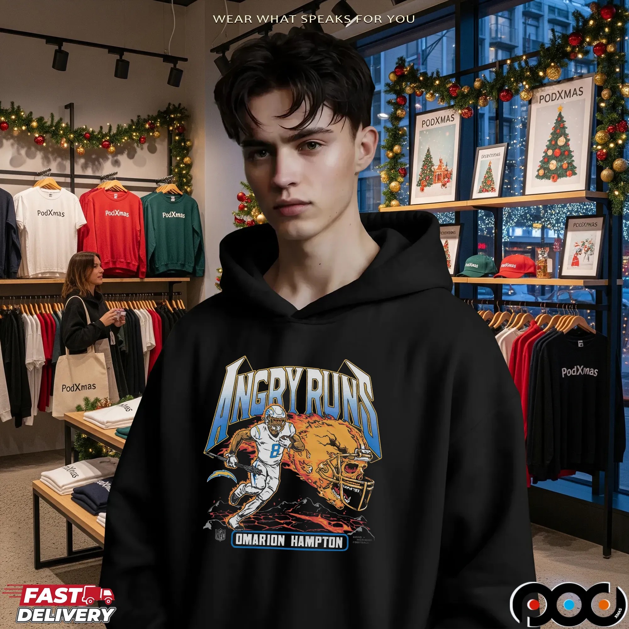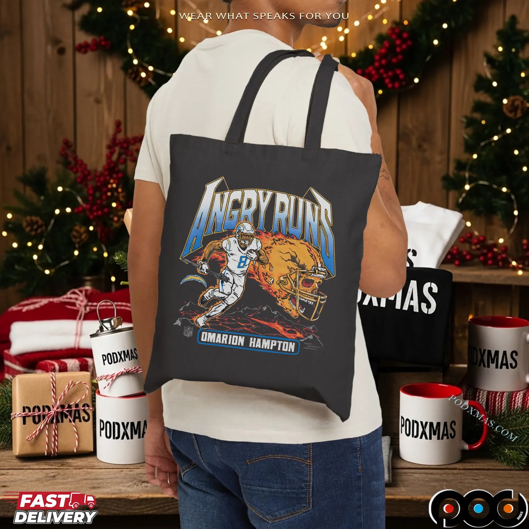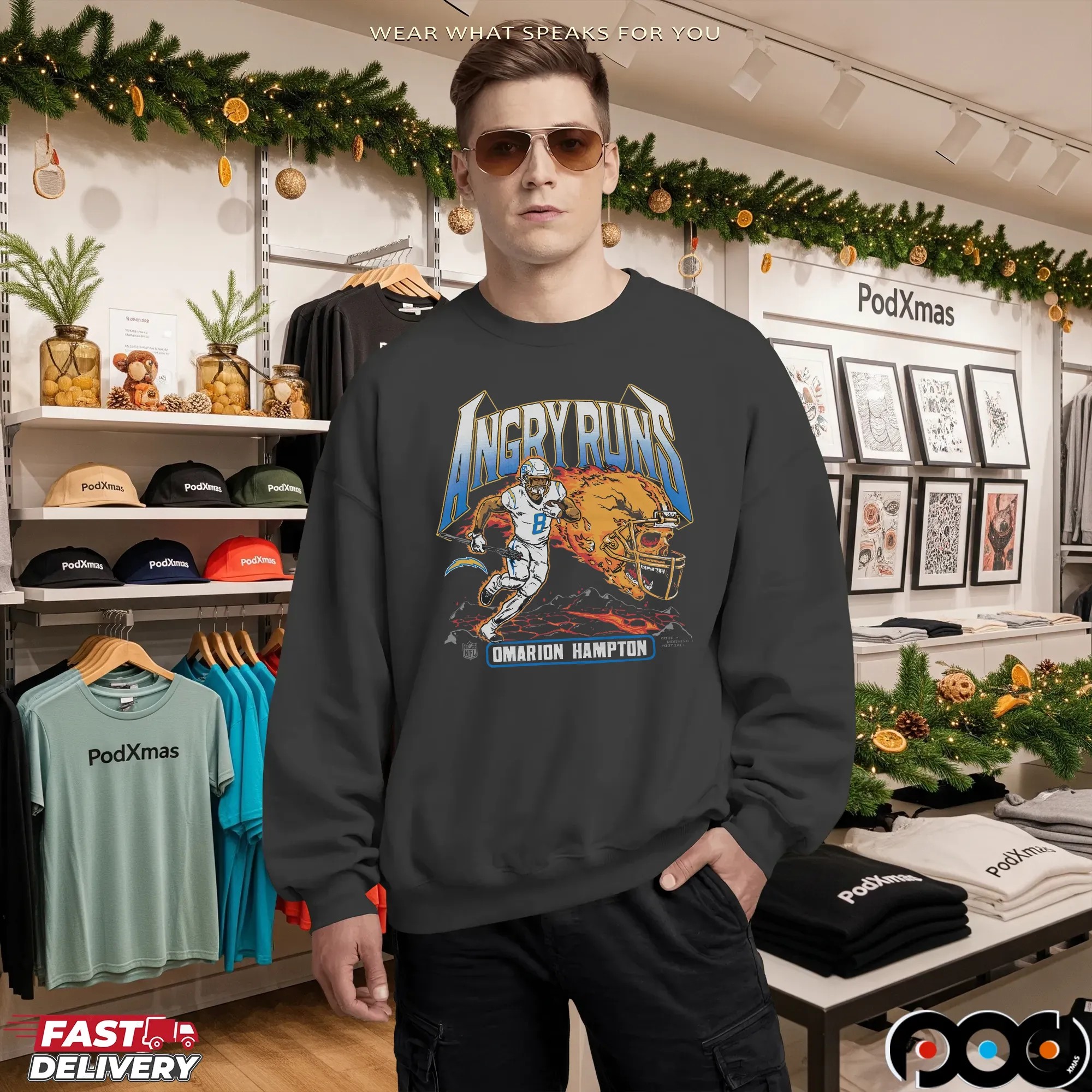 When it comes to quality and selection, the Angry Runs Angeles Chargers Omarion Hampton 2025 T Shirt from podxmas.com stands out from the rest. Our shirts are made from premium materials, ensuring a soft, breathable feel against your skin. We offer a variety of styles beyond just the classic T-shirt, including hoodies, sweatshirts, and tank tops, catering to fans of all ages. Need something for the little ones? We have baby tees and kids’ sizes, so the whole family can join in on the fun! The ordering process is simple, and customization options make it easy to create a unique piece that truly expresses your fandom. With so many options available, podxmas.com is your one-stop-shop for all things Chargers apparel, making it easier than ever to support your team in style.