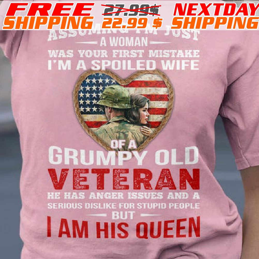 Army America Flag Heart Assuming I Am Just A Woman Was Your First Mistake I Am A Spoiled Wife Of A Grumpy Old Veteran But I Am His Queen Shirt