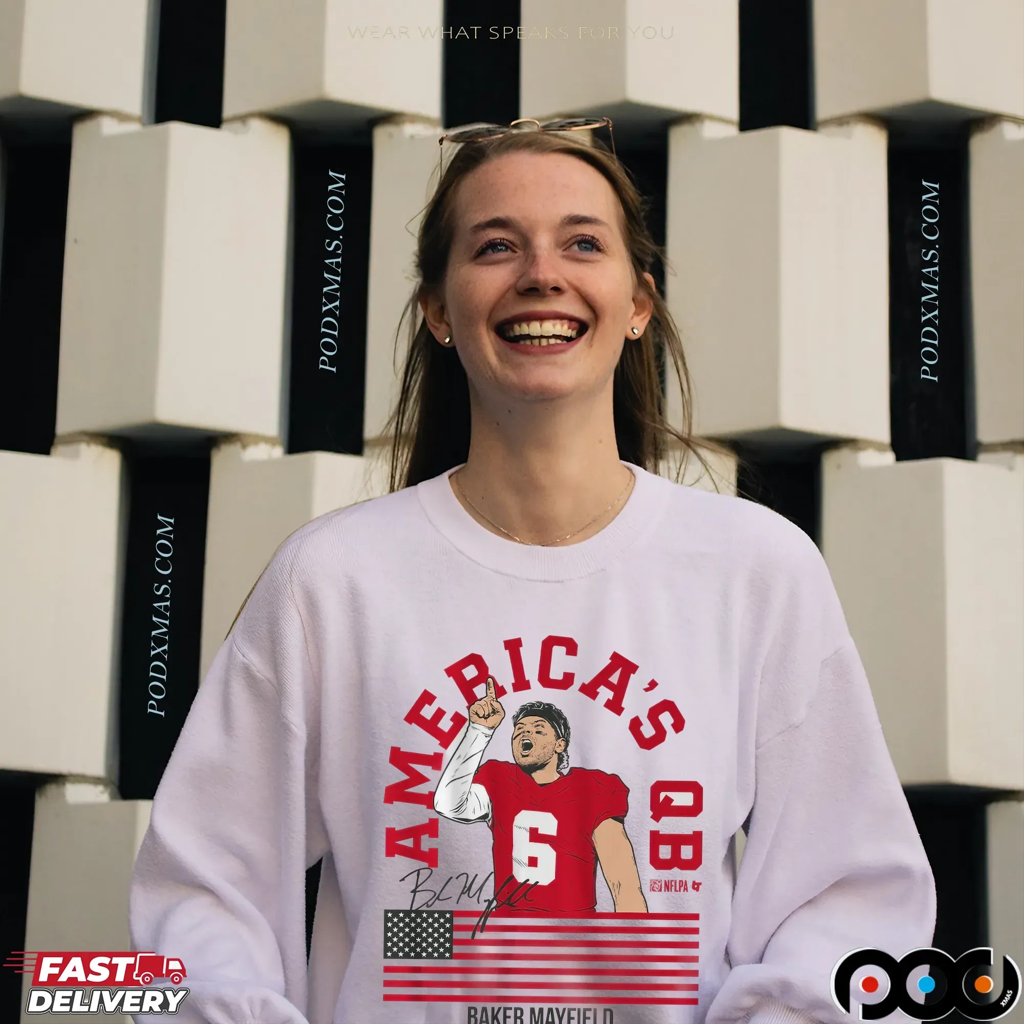Baker Mayfield America’s QB T Shirt , hoodie, sweater, cropped tee, long sleeve, v-neck, youth tee, mug