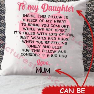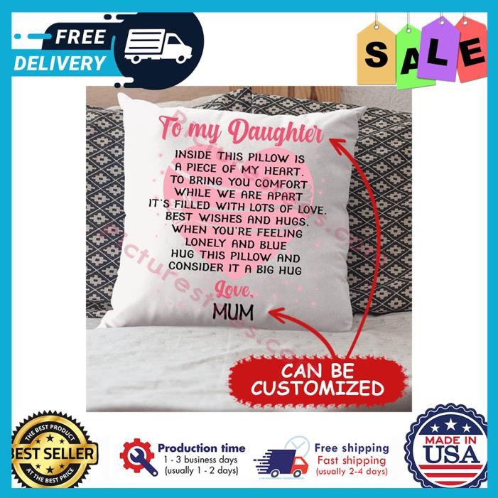 Best personalized to my daughter inside this pillow is a piece of my heart consider it a big hug love mum canvas pillow
