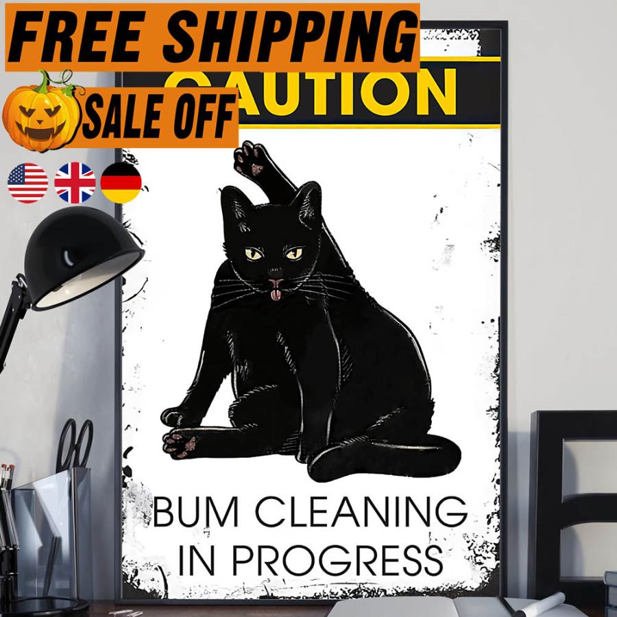 Black cat caution bum cleaning in progress poster