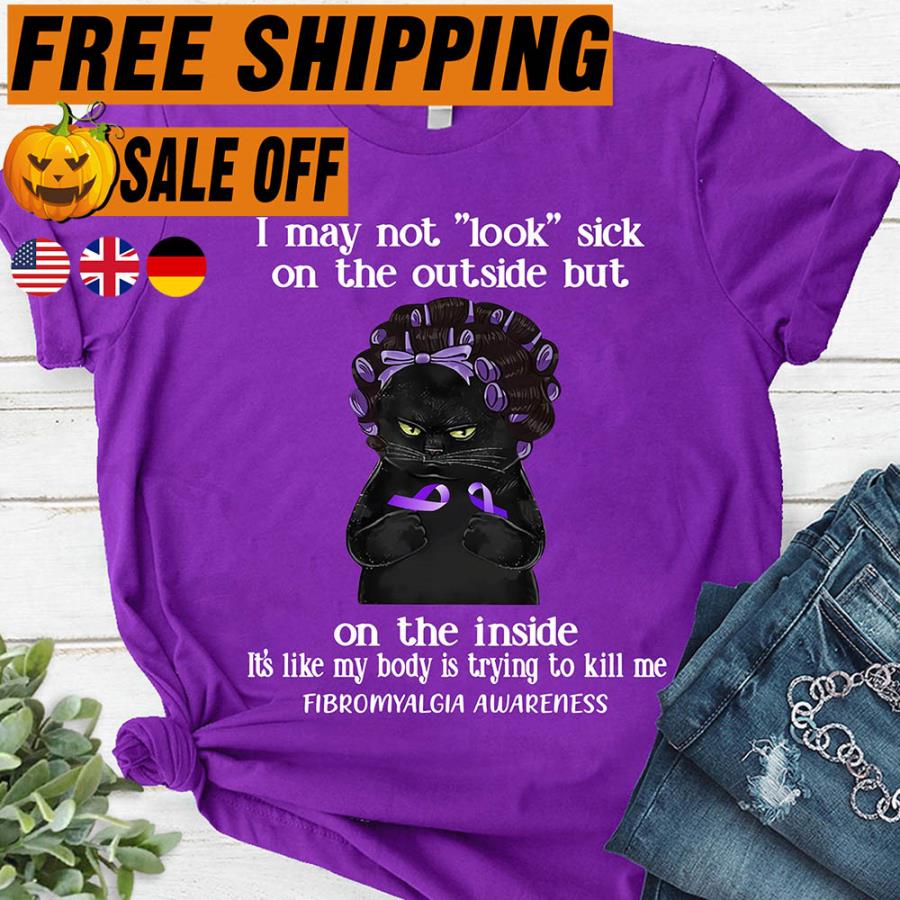 Black cat I may not look sick on the outside but on the inside, it’s like my body is trying to kill me Fibromyalgia awareness shirt, hoodie, tank top, sweater, and long sleeve t-shirt