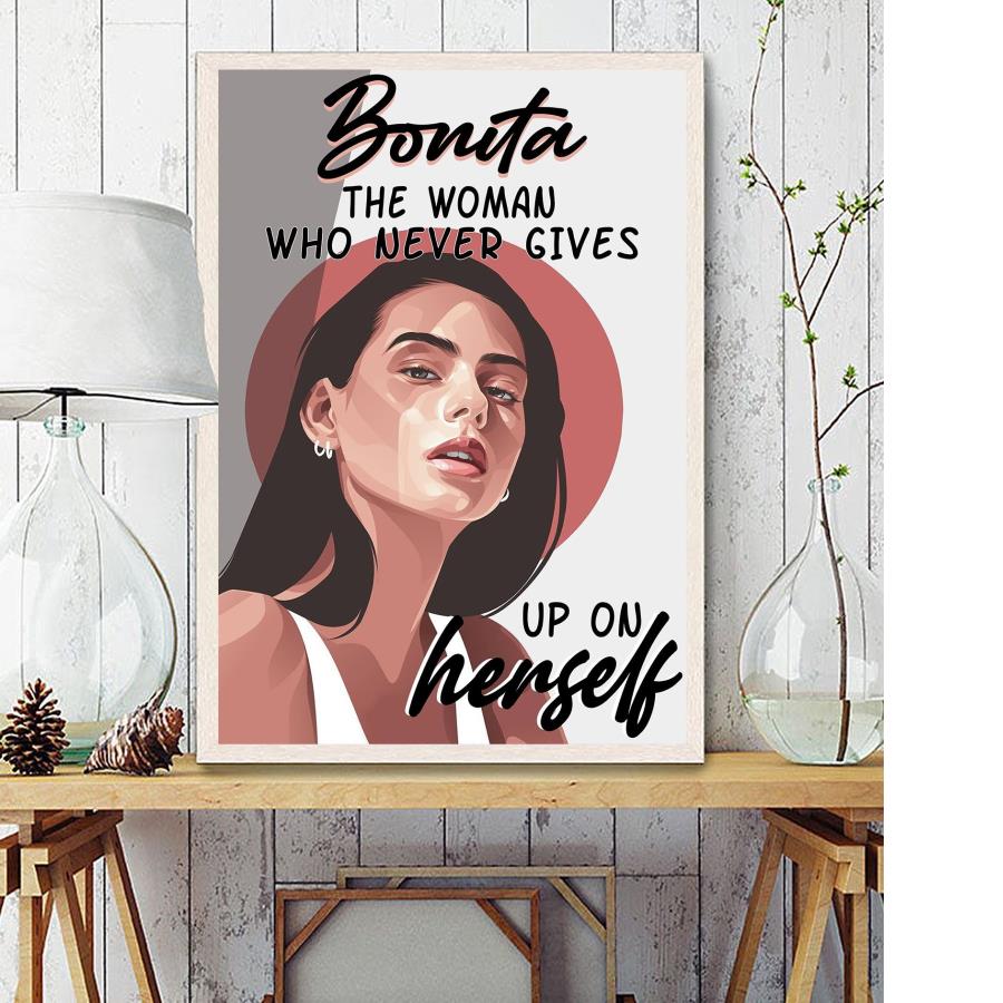 Bonita the woman who never gives up on herself poster, hoodie, tank top, sweater and long sleeve t-shirt