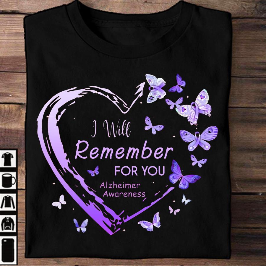 Butterfly I will remember for you Alzheimer Awareness shirt, hoodie, tank top, sweater and long sleeve t-shirt