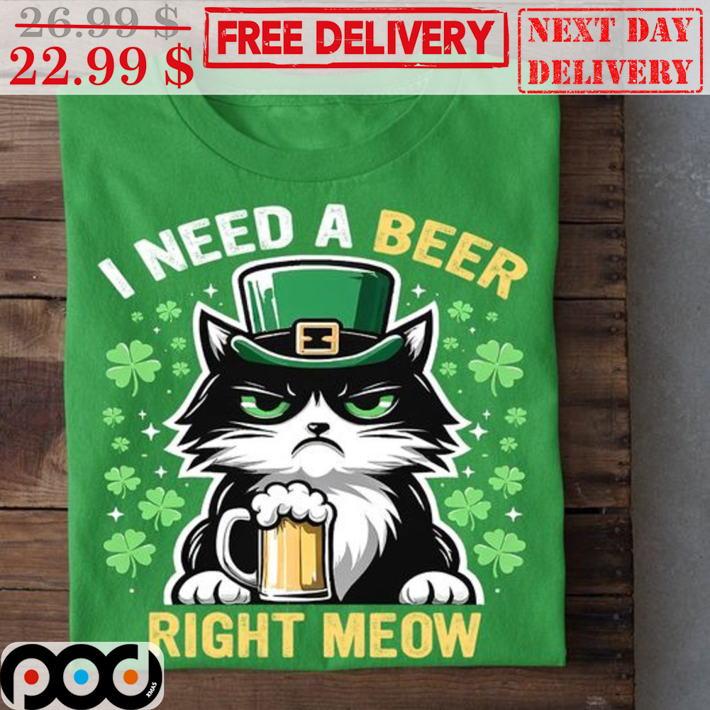 Cat I Need A Beer Right Meow St Patrick’s Day Shirt