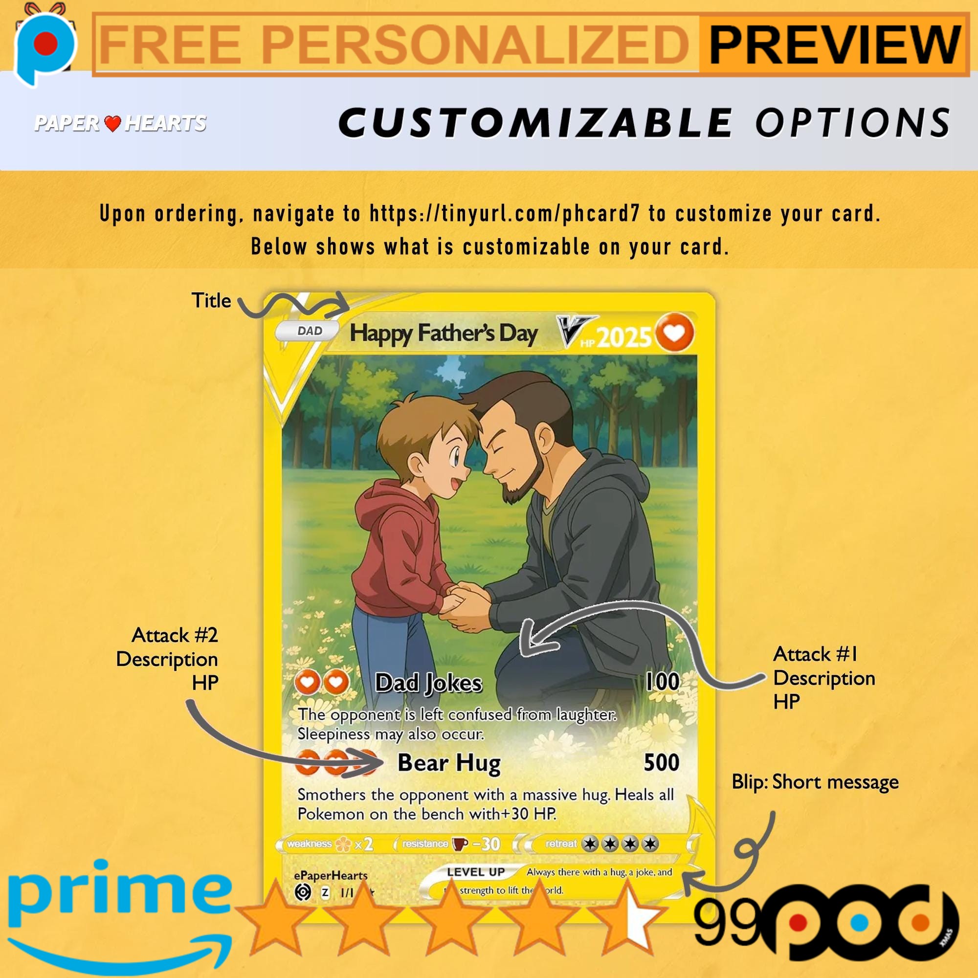 - Personalized Design: Customize the card with your dad’s photo and favorite Pokemon character. This personal touch makes the card a heartfelt gift, ensuring it stands out among typical Father’s Day cards.