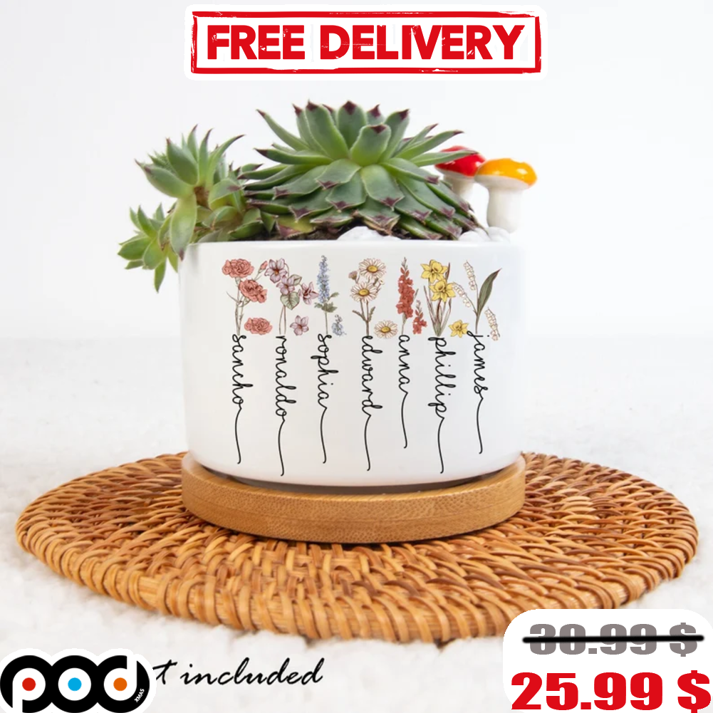 Custom Grandma And Grandkids Birth Month Flowers Mini Plant Pot