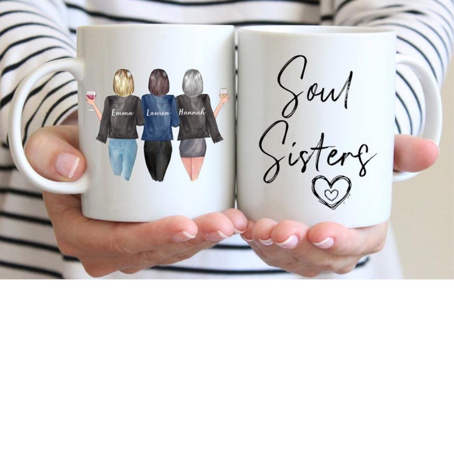 Custom Soul Sisters Mug, Soul Sister Cup, 3 Best Friends Mug, Personalized Mug for Friend