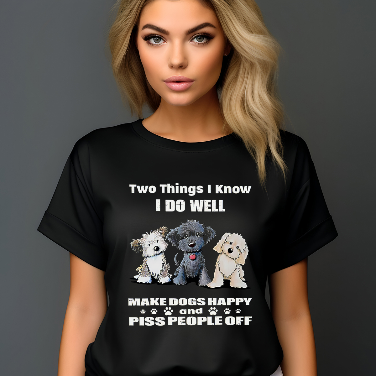 Custom Two Things I Know I Do Well Make Dogs Happy And Piss People Off 2024 Shirt