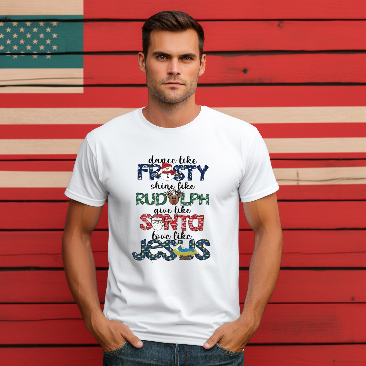 Dance Like Frosty Shine Like Rudolph Give Like Santa Love Like Jesus 2024 Shirt
