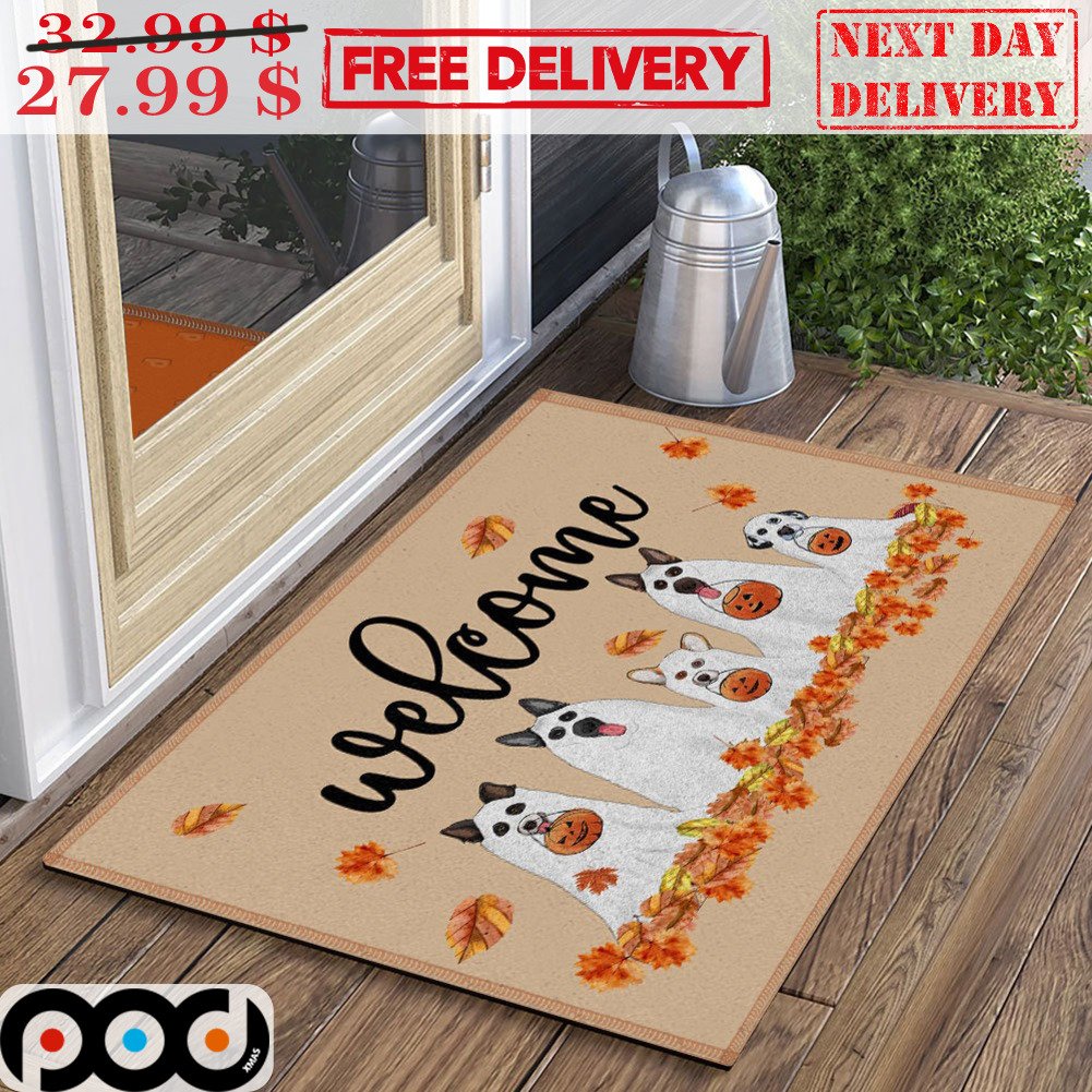 Dog Welcome Boo Ghost Fall Halloween 2023 Door Mat