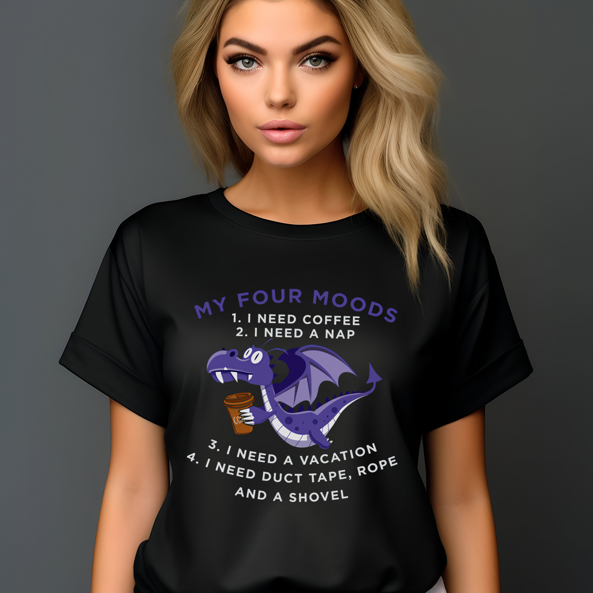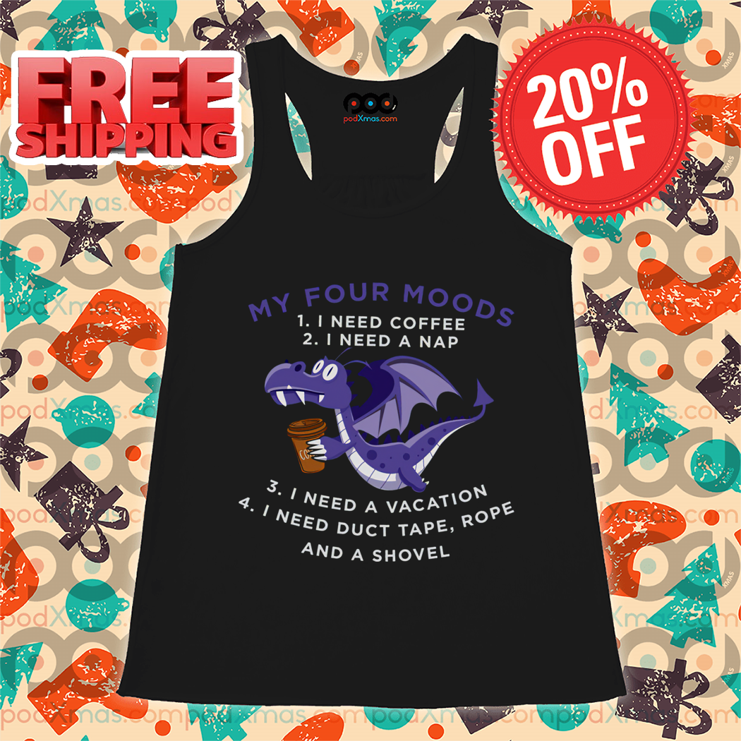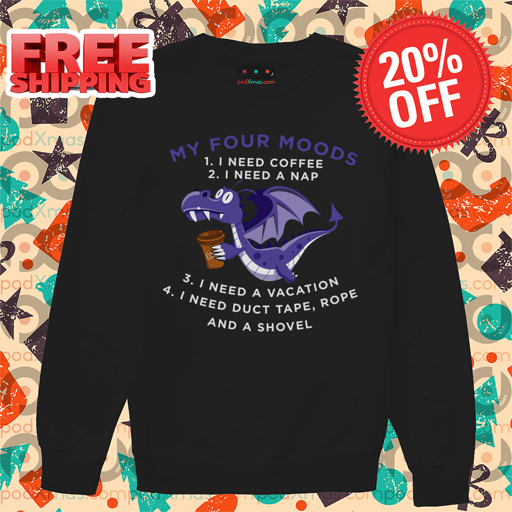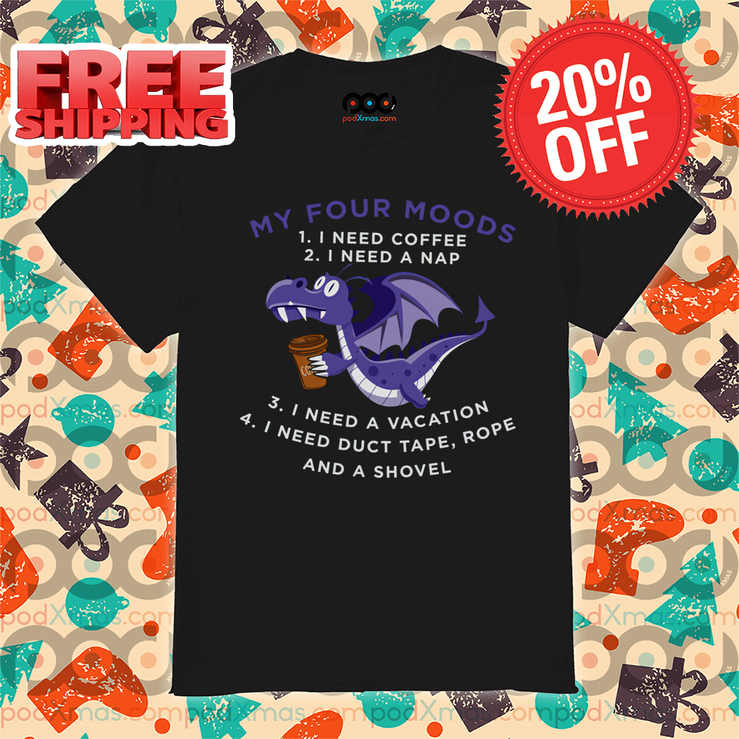 Dragon Coffee My Four Moods I Need Coffee I Need A Nap I Need A Vacation I Need Duct Tape Rope And A Shovel Shirt