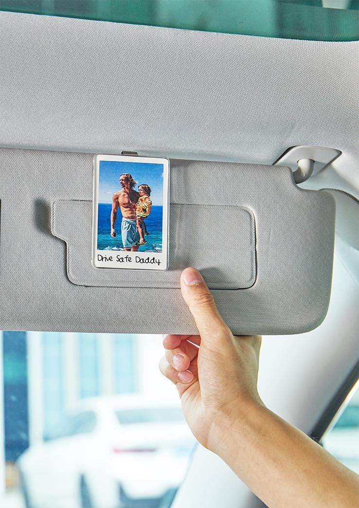 - User-Friendly: The visor frame easily attaches to most car visors, making it simple for Dad to display his favorite memories without hassle.