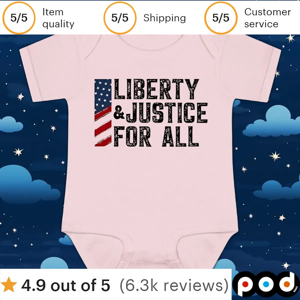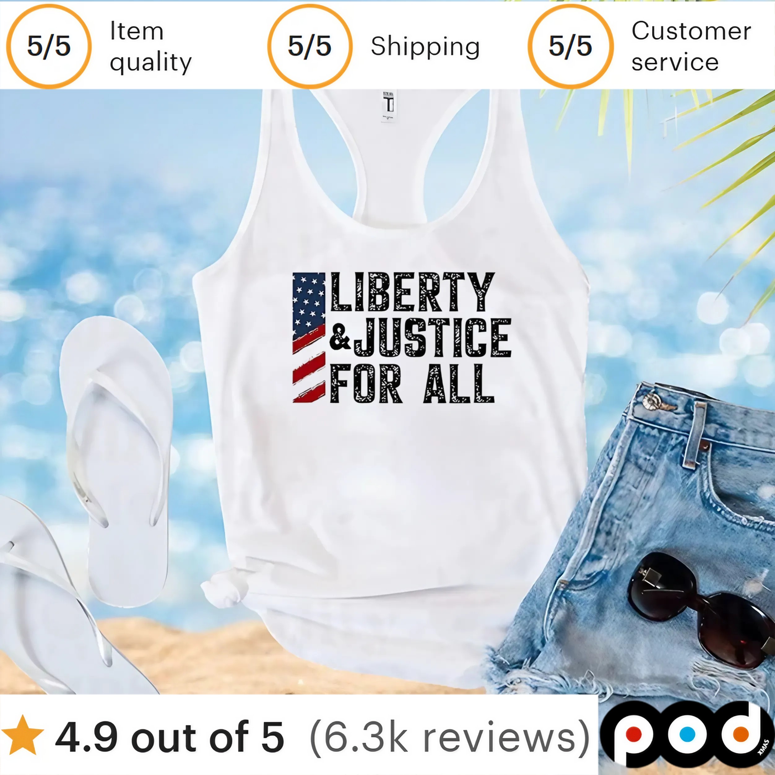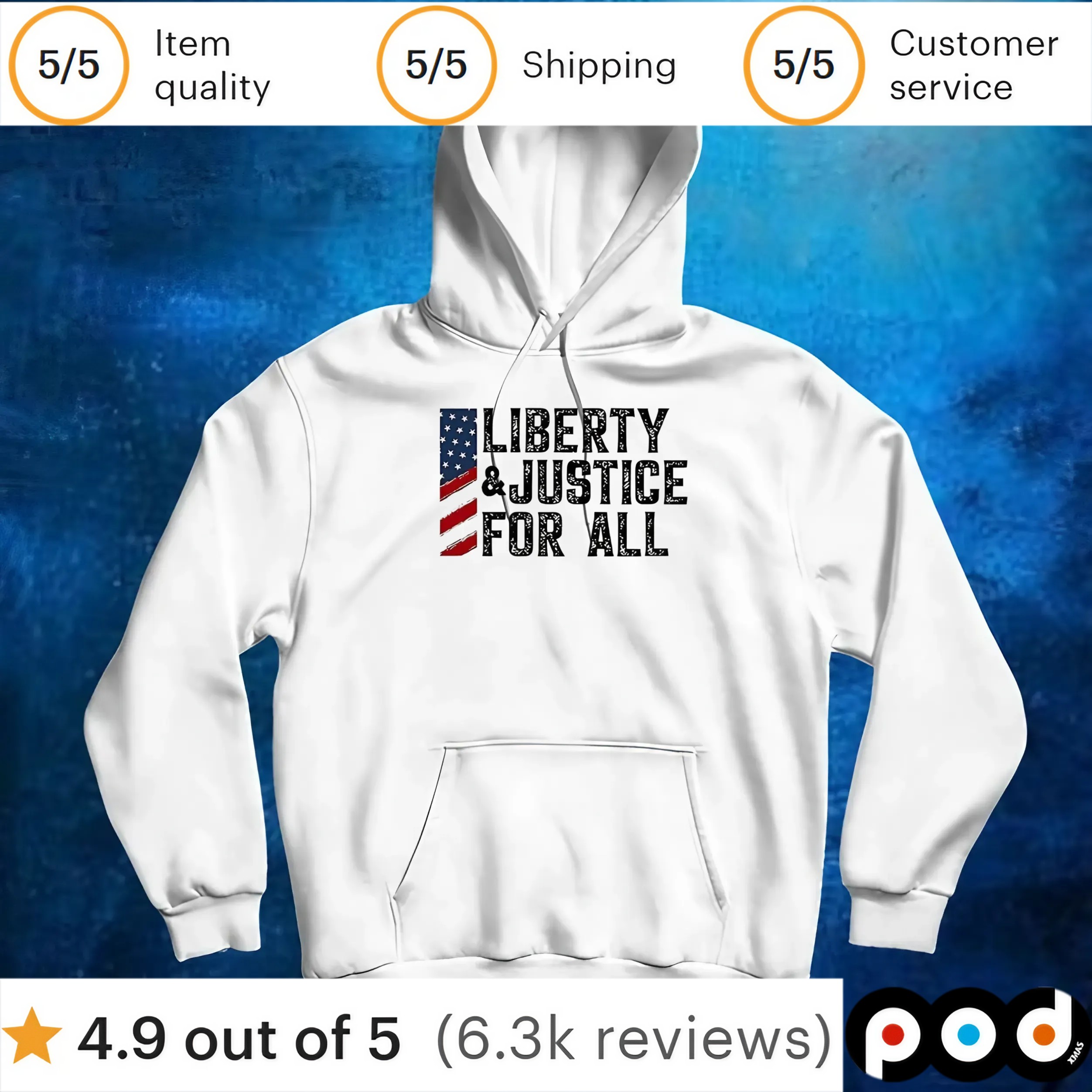 Podxmas Clothing is committed to delivering top-notch quality and sustainable practices. Our dedication to customer satisfaction is reflected in every stitch and print. By choosing our "Flag Liberty and Justice for All T-Shirt," you're not just buying clothing – you're supporting a brand that values fairness, integrity, and community.