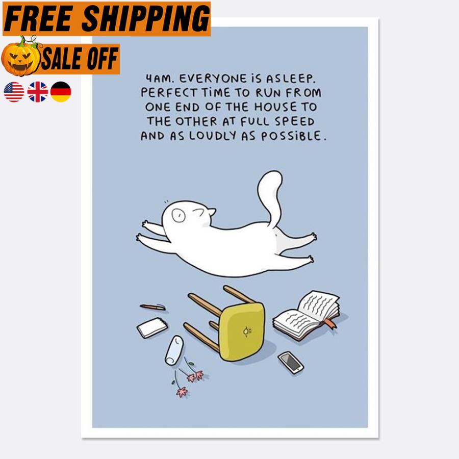 FREE SHIPING 4am everyone is asleep perfect time to run from one end of the house to the other at full speed and as loudly as possible poster