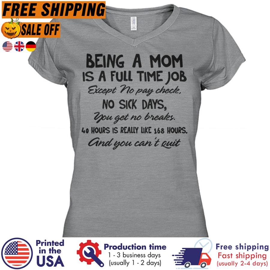 FREE SHIPING being a mom is a full time job except no pay check no sick days you get no breaks 40 hours is really like 169 hours and you can_t quit shirt, hoodie, tank top, sweater and long sleeve t-shirt