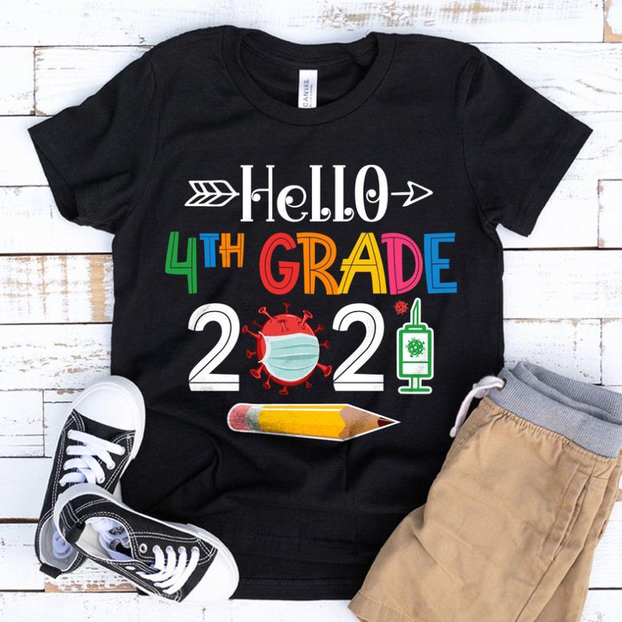 Hello 4th Fourth Grade 2021 T-Shirt, Back To School Shirt, Quarantined Social Distancing, First Day of School 2021 Gifts for Teacher Student, hoodie, tank top, sweater and long sleeve t-shirt