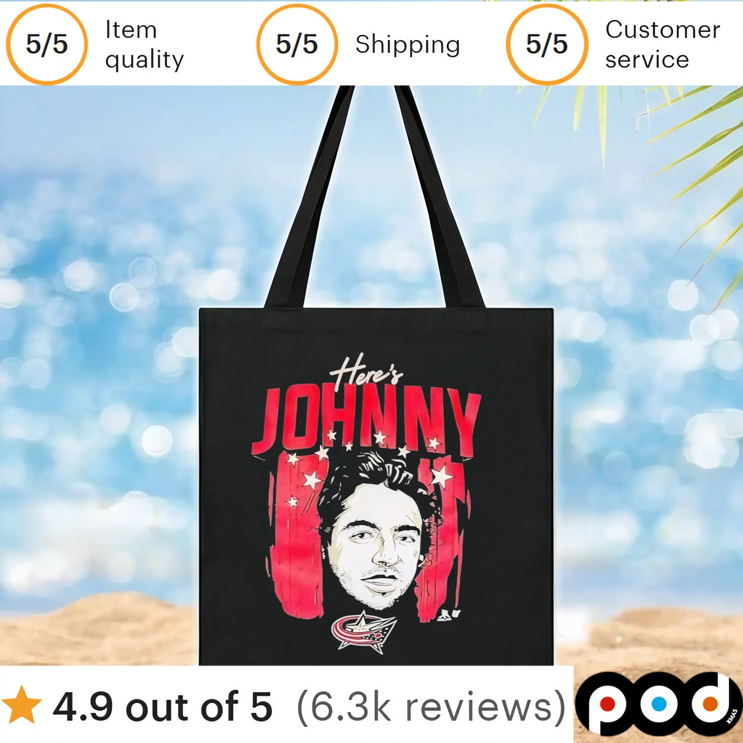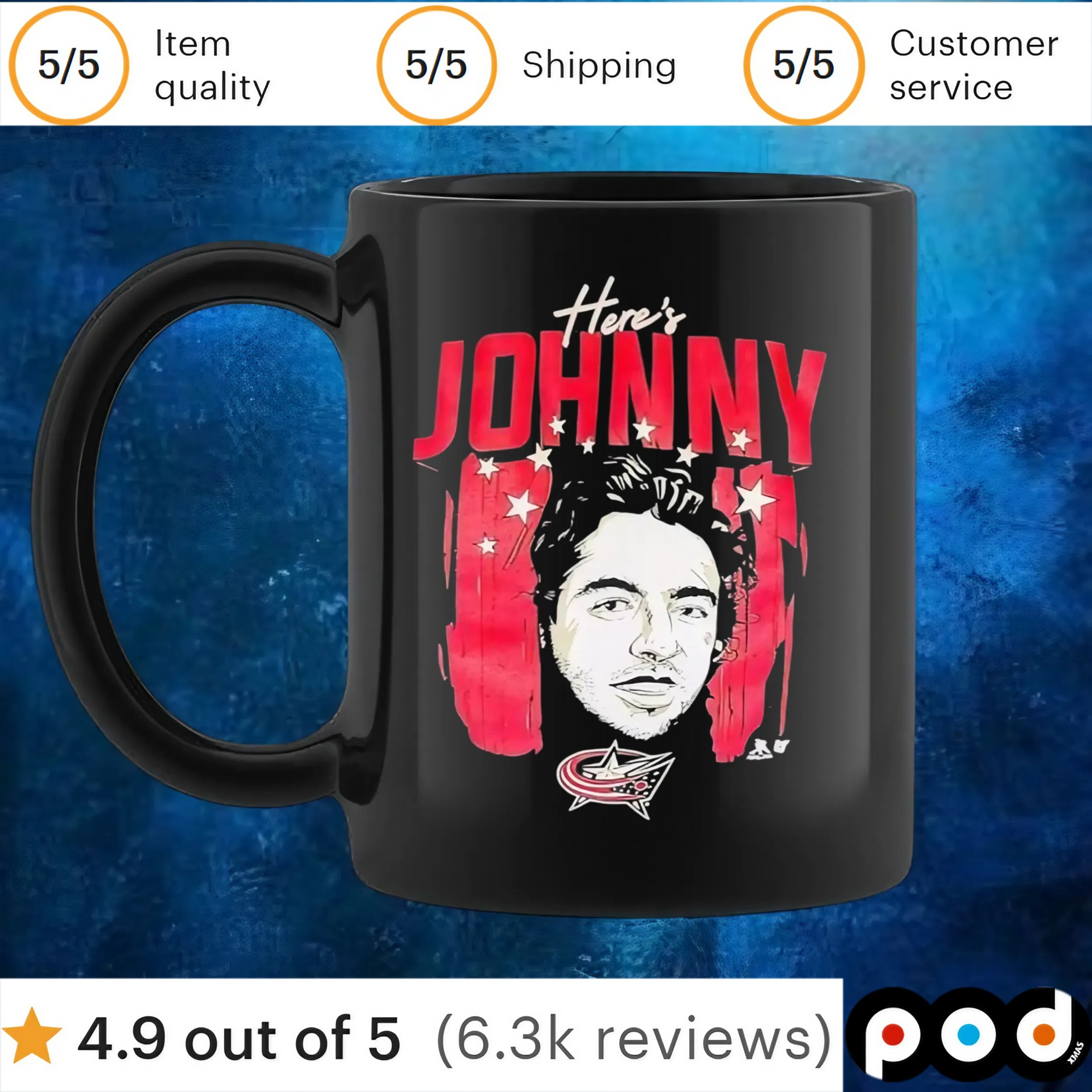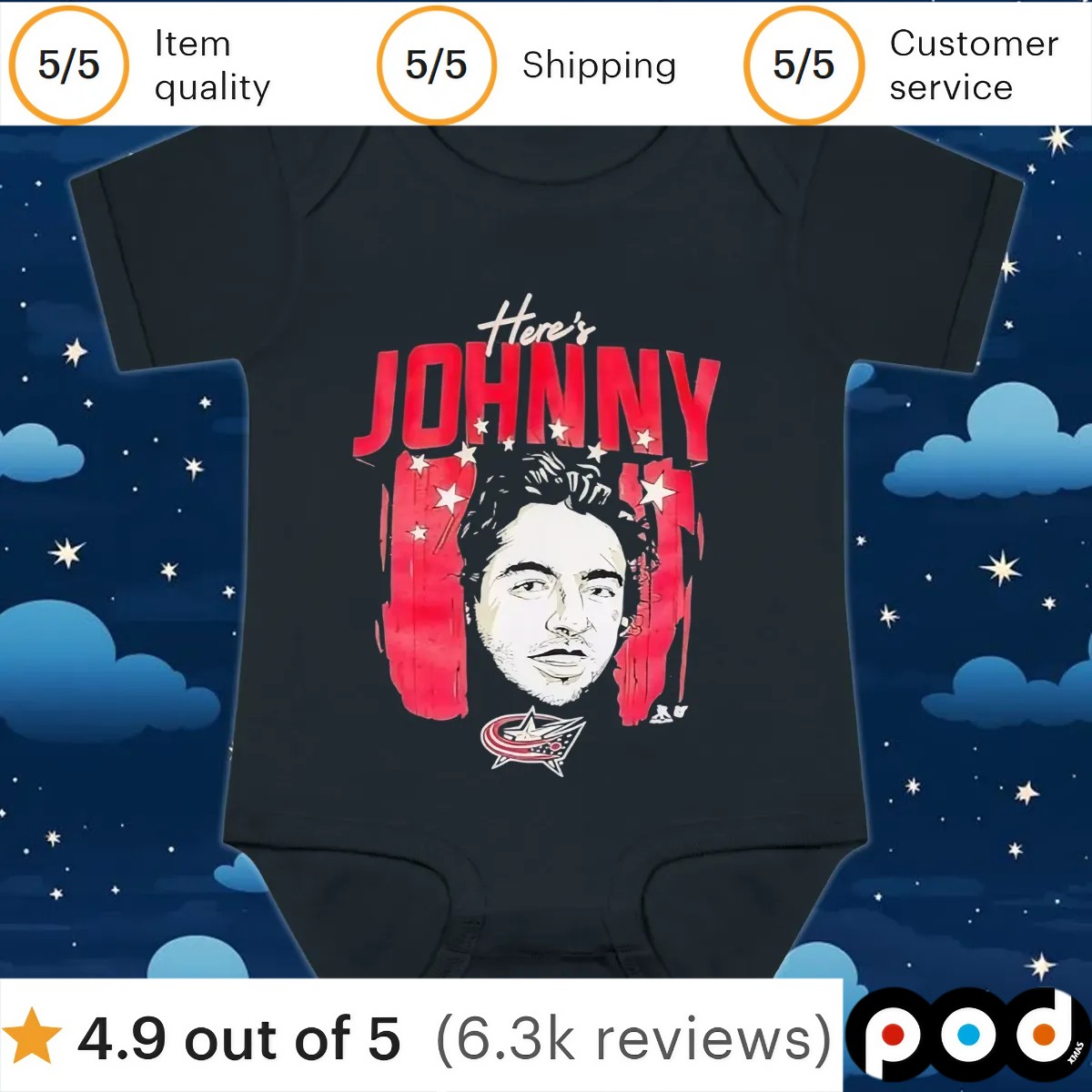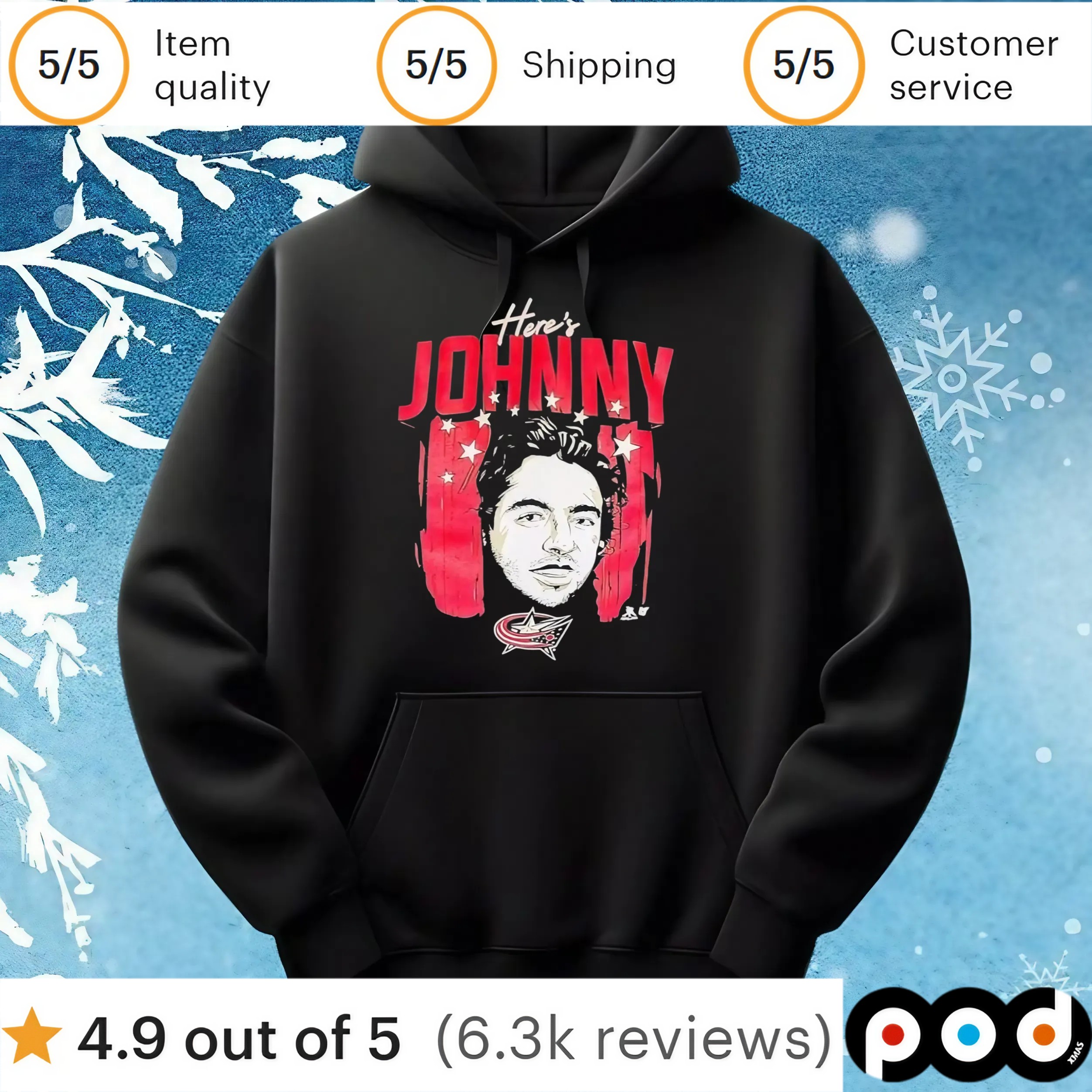 Here’s Johnny Gaudreau Columbus Blue Jackets T Shirt , Sweater, Hoodie, Crop Tee, Baby Bodysuits, Tote, Mug