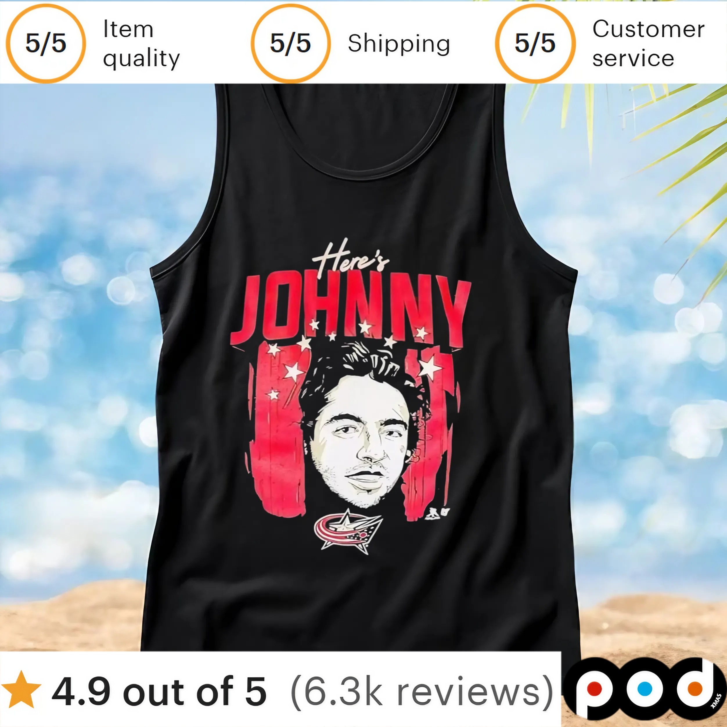Elevate your game-day experience and showcase your passion for hockey with the "Here’s Johnny Gaudreau Columbus Blue Jackets T-Shirt." Discover the comfort and style that sets you apart from the crowd. Experience the difference today and make this T-shirt a staple in your fan gear collection!