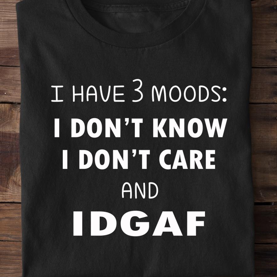 I have 3 moods I don’t know I don’t care and IDGAF shirt