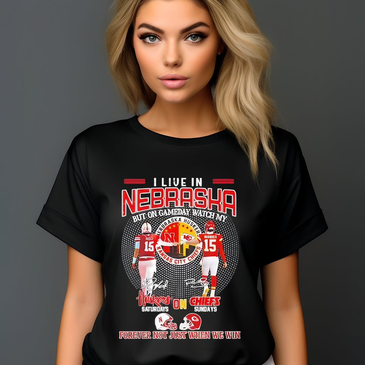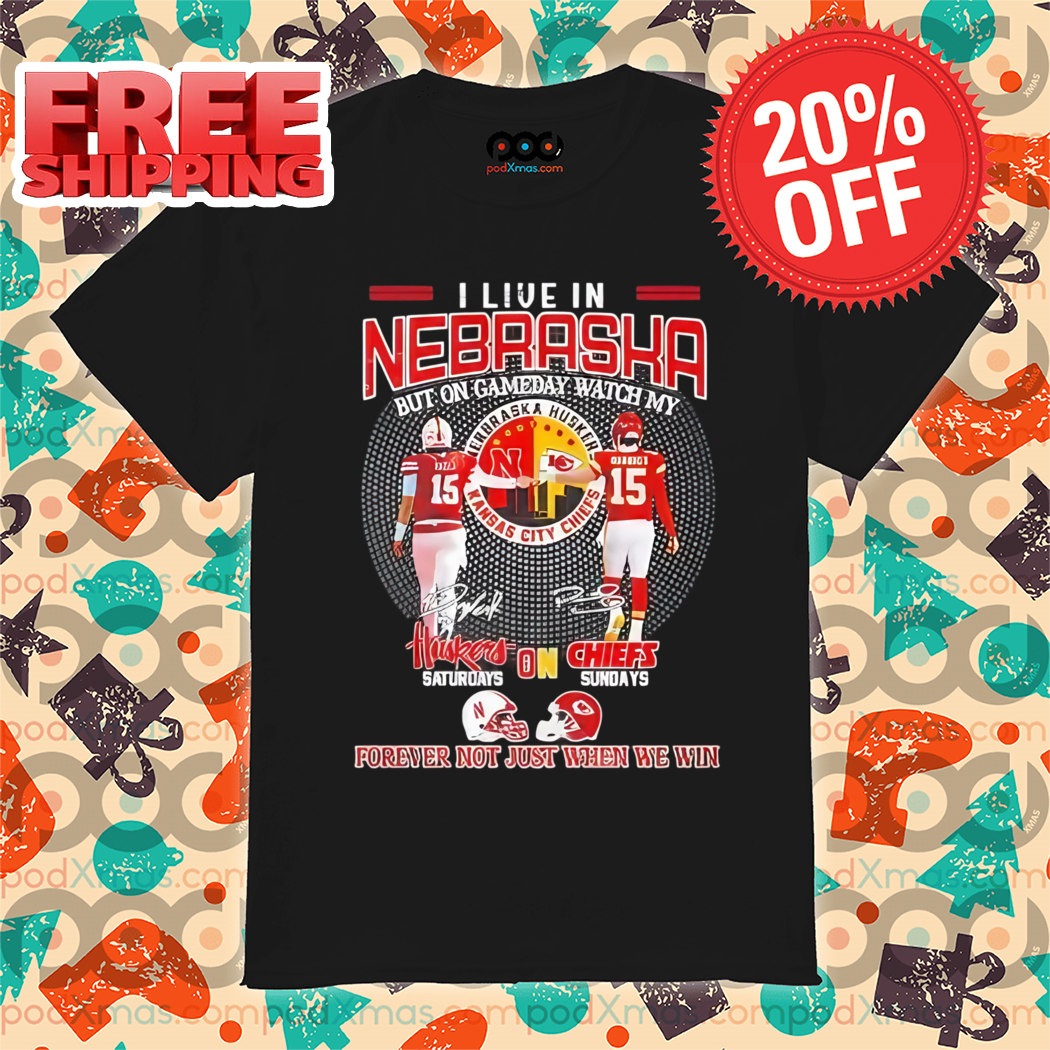 I Live In Nebraska But On Gameday Watch My Huskers Saturdays Chiefs Sundays Forever Not Just When We Win Shirt
