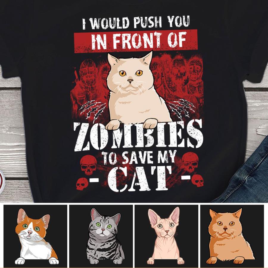 But growing it is. One caveat: When I was in Sydney near Halloween, it seemed more popular there than what I experienced in Melbourne, but that may have to do with particular neighbourhoods being more creative than others. Ironically, objections to Halloween being commercial is more apt for Australia than it is for the I would push you in front of zombies to save mt cat shirt also I will do this US, Ireland, Scotland, Canada, Germany, etc, etc, where people have taken the creativity and fun of the celebration more to heart.