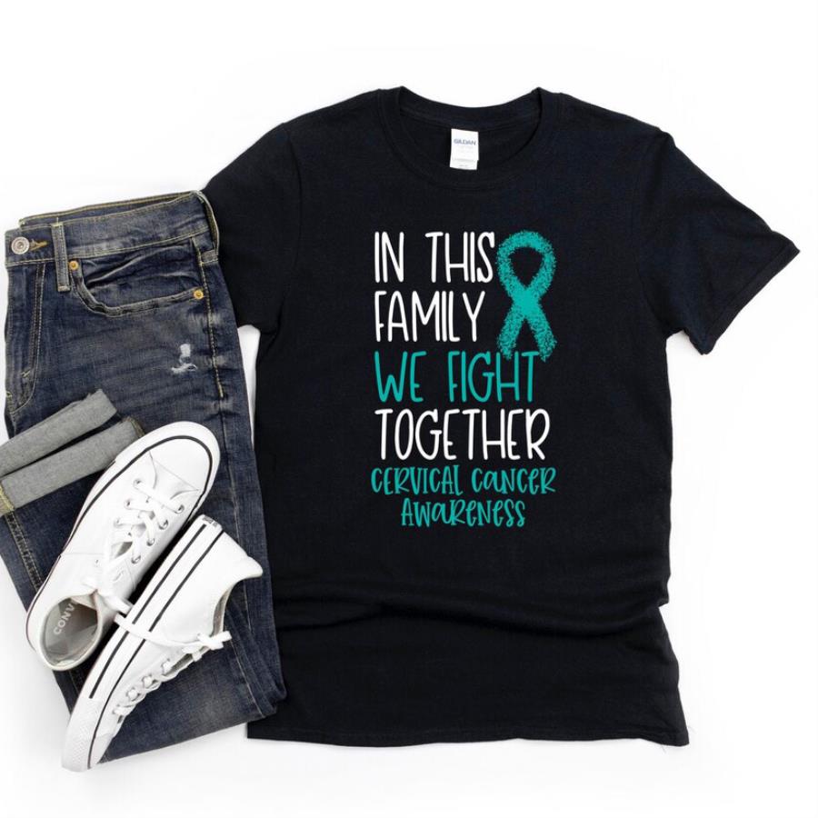 In this family we fight together cervical cancer awareness shirt, hoodie, tank top, sweater and long sleeve t-shirt