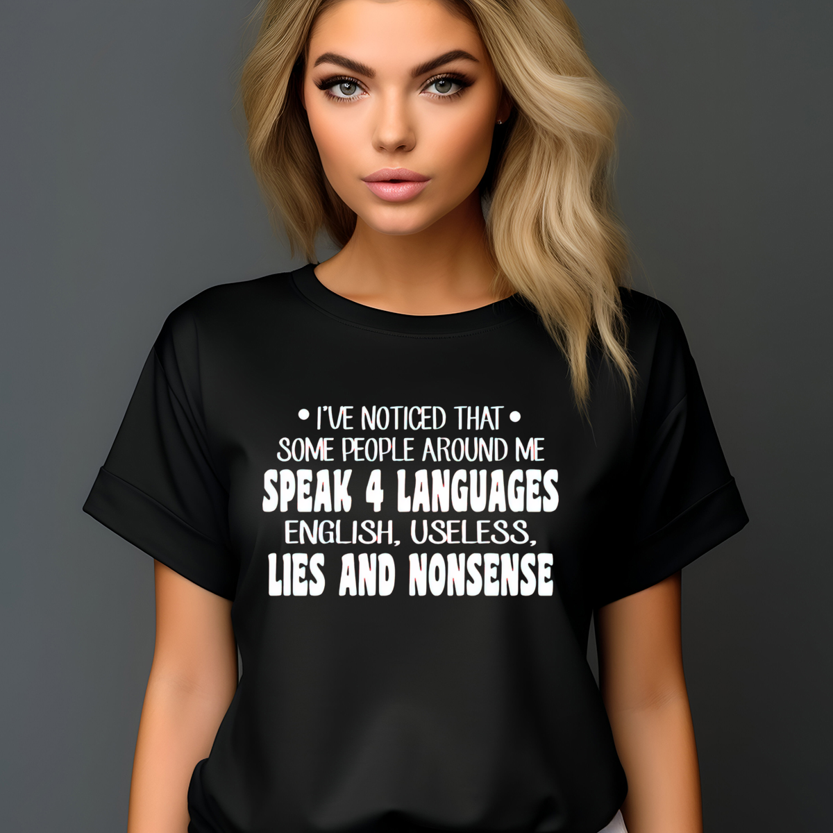 I’ve Noticed That Some People Around Me Speak 4 Languages English Useless Lies And Nonsense Shirt