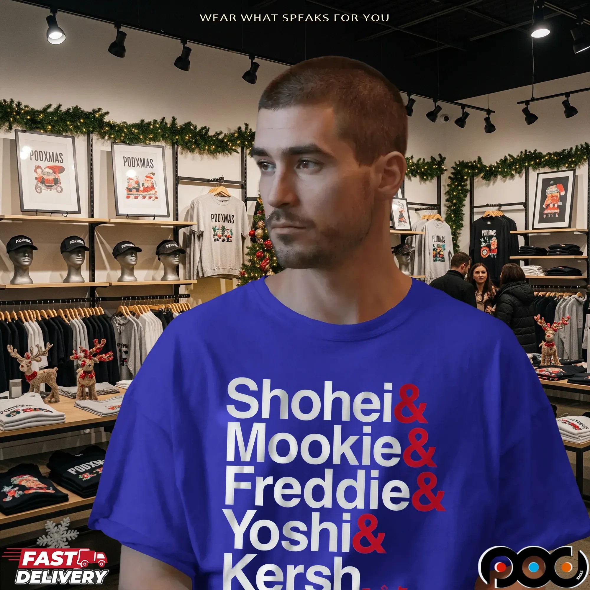 When it comes to finding the perfect **Los Angeles Baseball Ampersand Stars Names T Shirt**, quality and creativity matter. At **podxmas.com**, we pride ourselves on offering premium-quality shirts that are not only stylish but also comfortable and durable. Every shirt is made from soft, breathable fabric that ensures you stay comfortable, whether you’re cheering from the stands or hanging out with friends. Plus, we provide easy customization options, allowing you to add custom text, images, or logos that reflect your unique style. With a diverse range of products, including hoodies, sweatshirts, crop tees, and baby tees, you can find the perfect fit for everyone in your family. Ordering is simple and hassle-free, ensuring that you can get your hands on this unique shirt in no time.