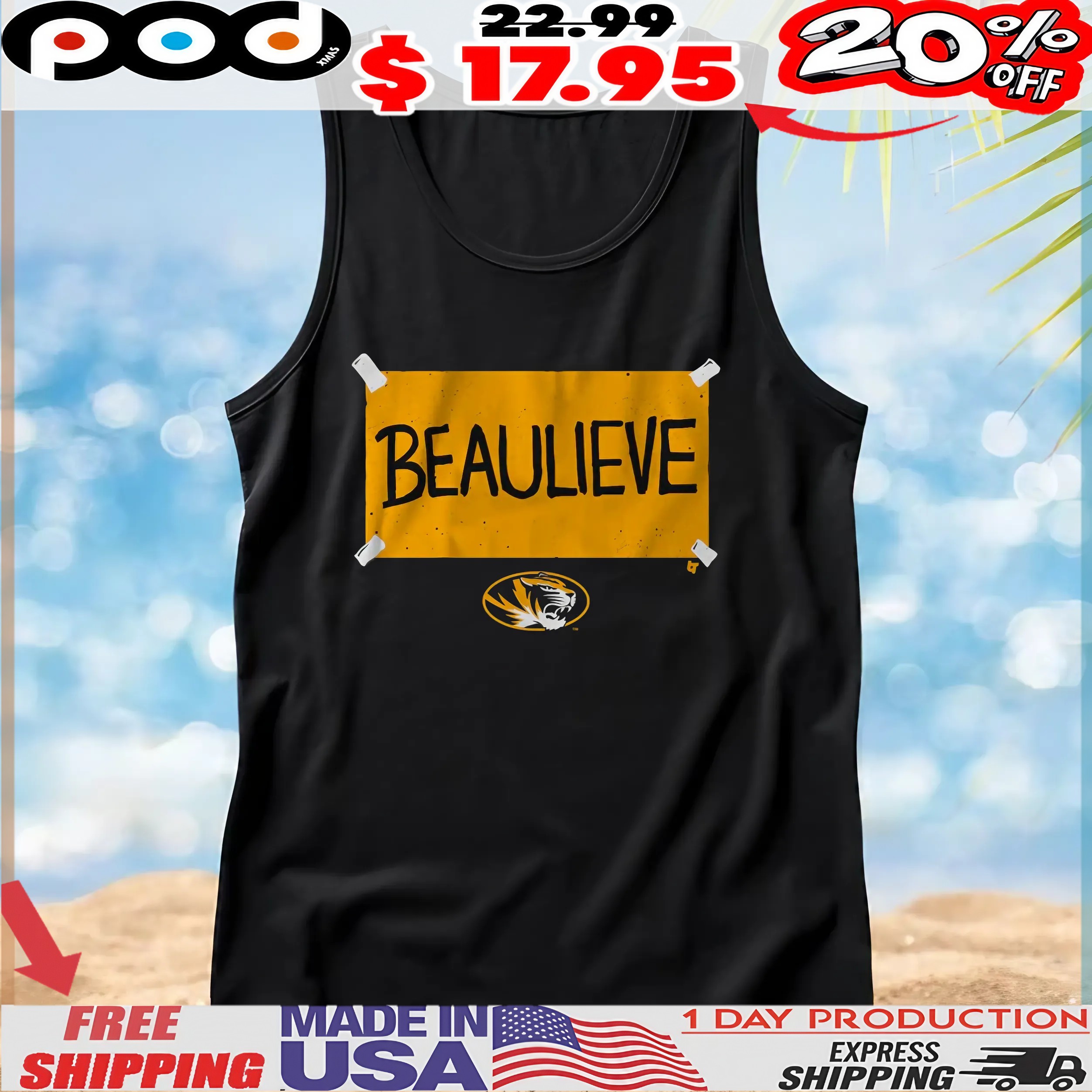 Choosing the Missouri Football Beau Pribula Believe Beaulive T Shirt from podxmas.com means opting for quality and variety. Our version stands out due to its superior fabric that ensures longevity and comfort. Plus, the ability to customize your shirt with personal text or images makes it an exceptional choice for fans looking to express their individuality. Additionally, podxmas.com offers a range of styles beyond just t-shirts, including hoodies, sweatshirts, and tank tops, catering to all ages and preferences. The ordering process is streamlined, making it easy and hassle-free to get exactly what you want. Whether for yourself or as a gift, this shirt is a versatile and stylish option that any Missouri football fan would love to wear.