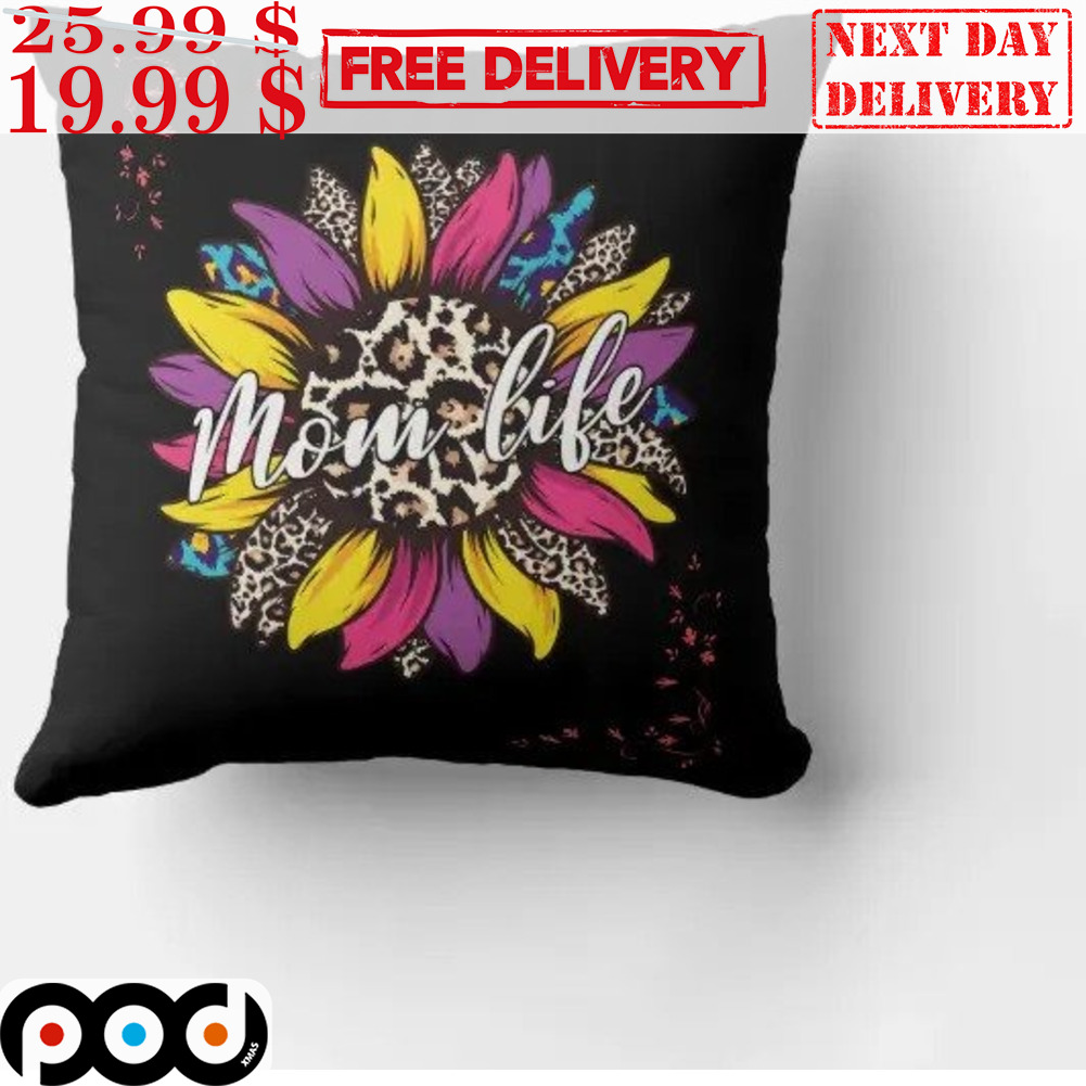 Mom Life Sunflower Nature Lover Leopard Pillow