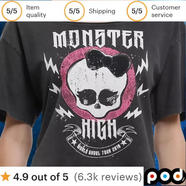 At Podxmas Clothing, we are committed to delivering not just trendy pieces, but also quality and satisfaction. Our passion for unique fashion means you can trust that your Monster High Skullette Off-The-Shoulder World Ghoul Tour T-Shirt is made with care and designed to impress.