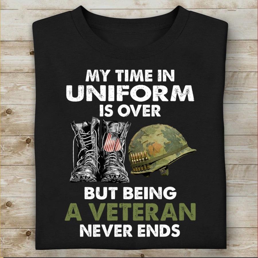 My time in uniform is over but being a veteran never ends shirt, hoodie, tank top, sweater and long sleeve t-shirt