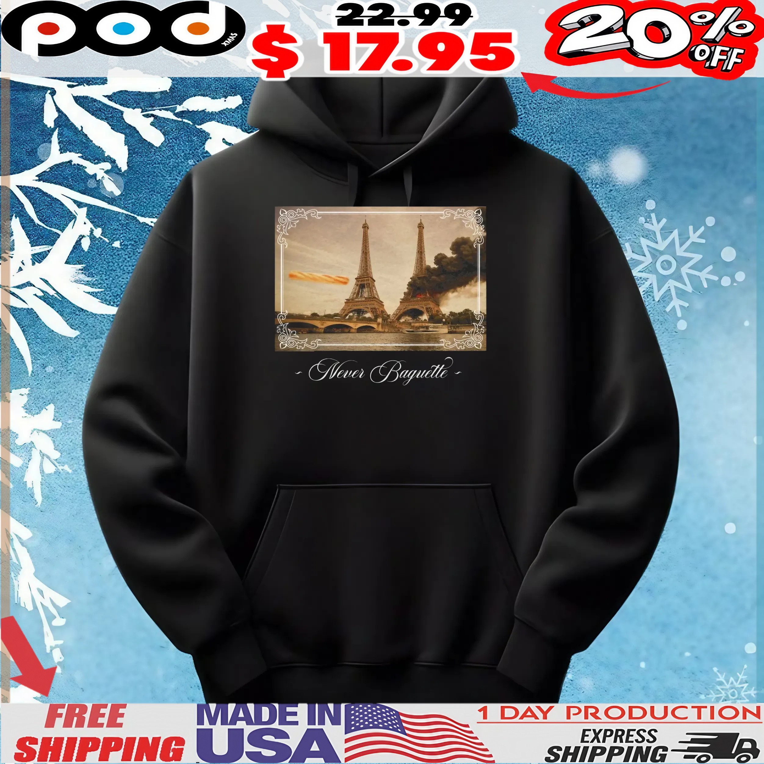 When it comes to finding the perfect Never Baguette Eiffel T Shirt, look no further than podxmas.com. Our version stands out due to its superior quality, comfortable fit, and the option to customize it with your own text or images, making it a truly personal item. We understand the importance of variety, which is why we offer this design in different styles—hoodies, sweatshirts, tanks, crop tees, and even options for kids! Easy online ordering ensures that you can quickly find the right fit and style for yourself or as a gift for someone special. By choosing podxmas.com, you’re not only getting a fantastic product but also supporting a brand committed to quality and customer satisfaction.