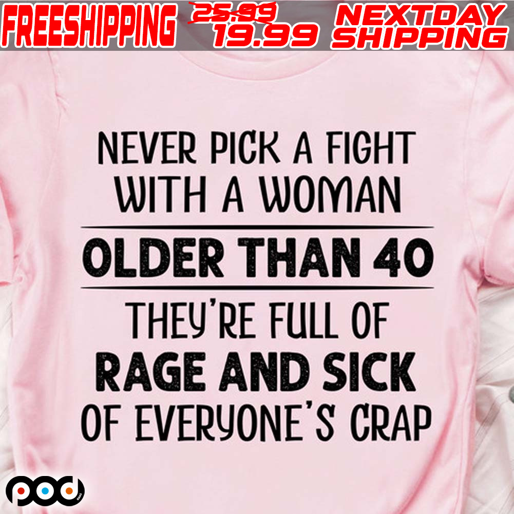 Never Pick A Fight With A Woman Older Than 40 They’re Full Of Rage And Sick Shirt
