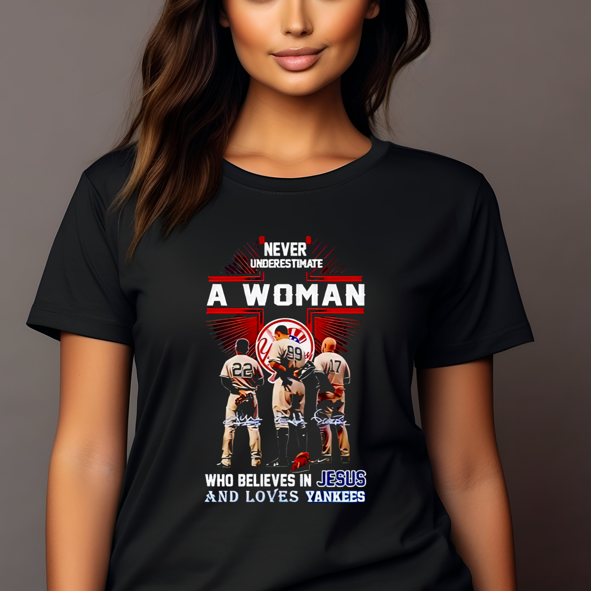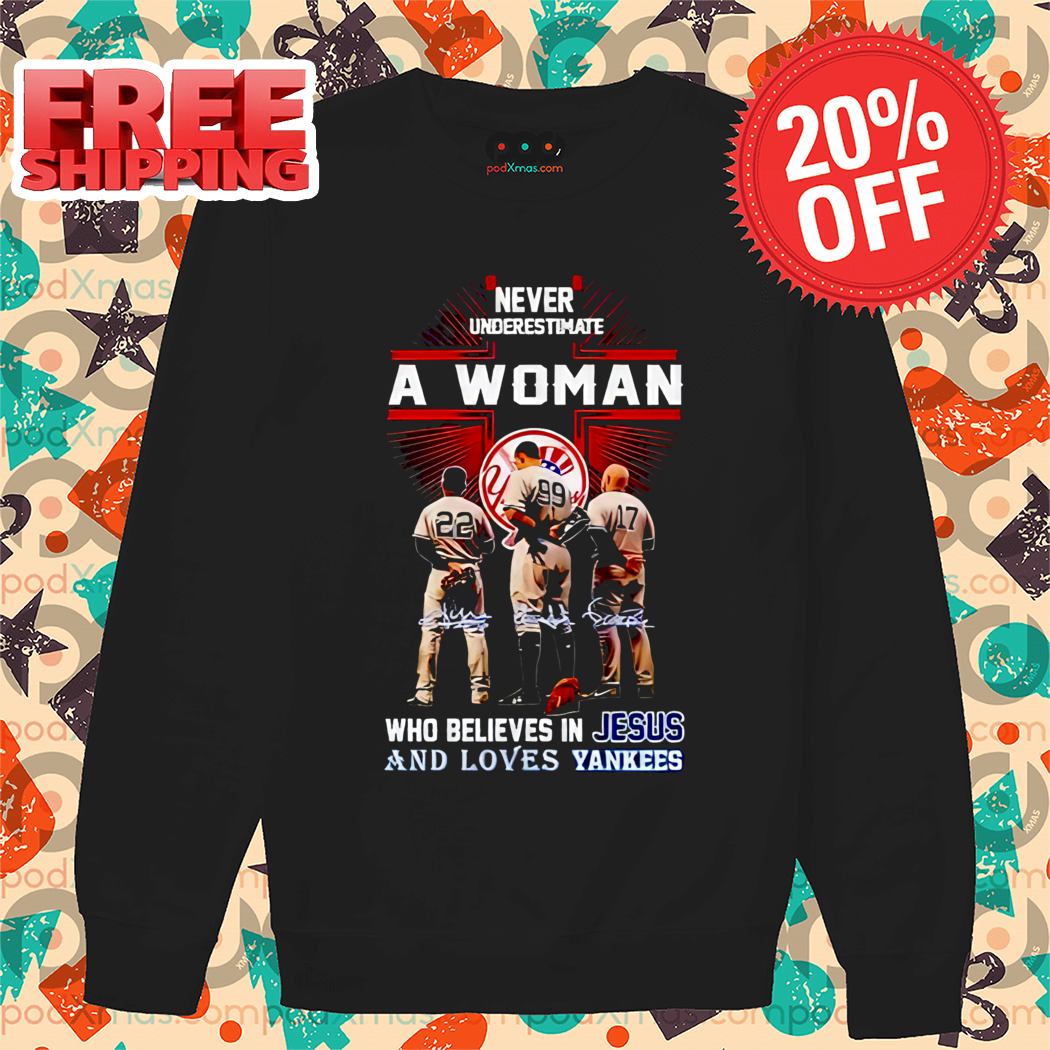 Never Underestimate A Woman Who Believes In Jesus And Loves New York Yankees Players Signature Shirt