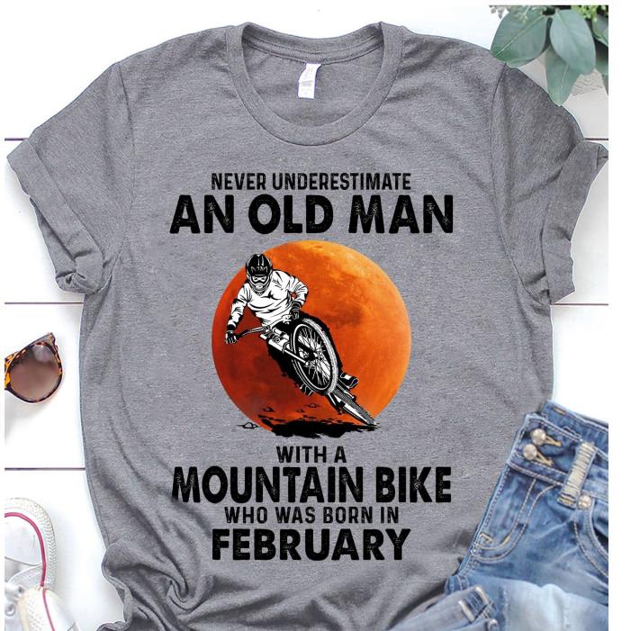 Never Underestimate An Old Man With A Mountain Biker Who Was Born In February Men Drive Motorbike Custom T-shirt Printing