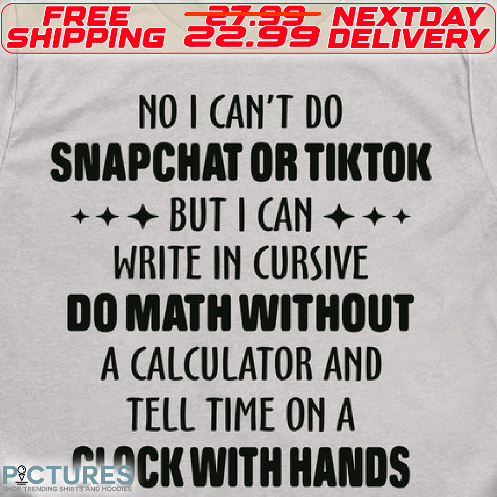 No I Can’t Do Snapchat Or Tiktok But I Can Write In Cursive Do Math Without A Calculator And Tell Time On A Clock With Hands Shirt1