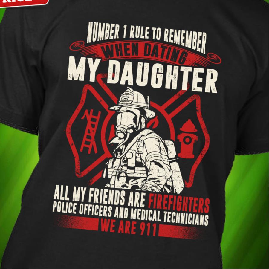 Number 1 rule to remember when dating my daughter all my friends are firefighters police officers and medical technicians we are 911 shirt