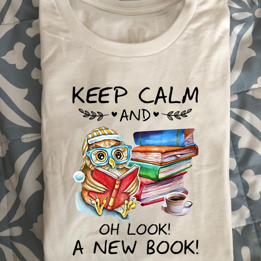 Owl keep calm and oh look a new book shirt, hoodie, tank top, sweater and long sleeve t-shirt