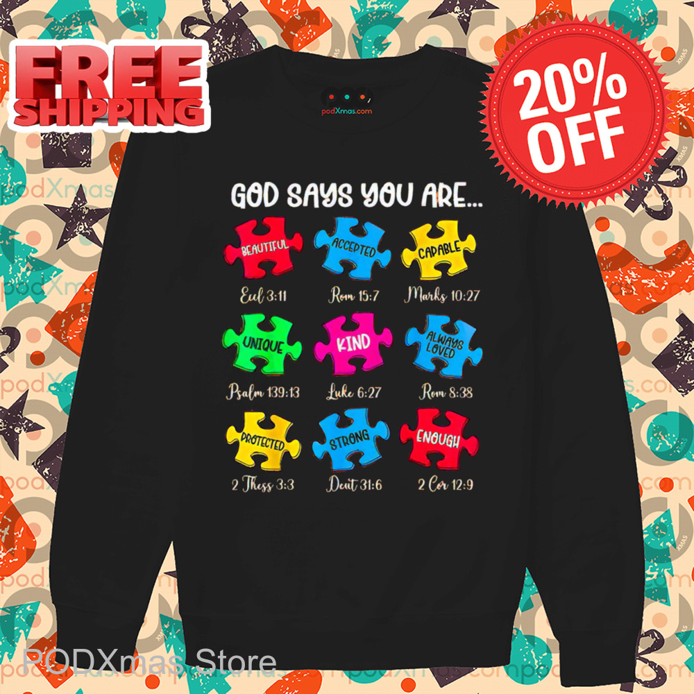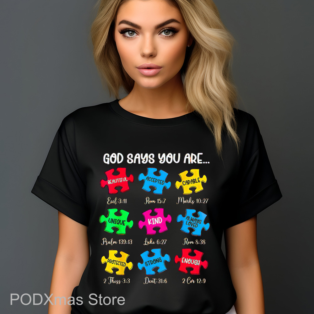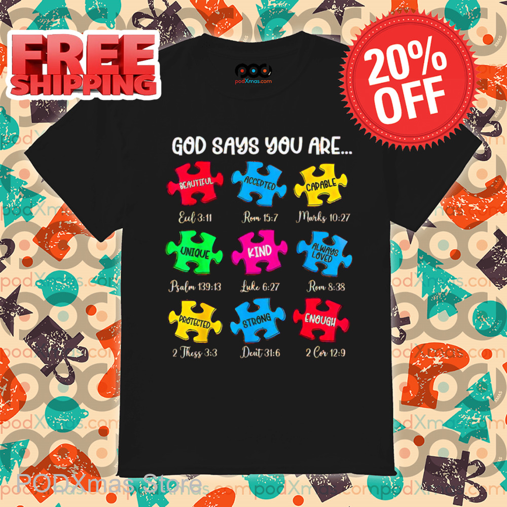 Puzzle Piece God Says You Are Beautiful Unique Kind Strong Shirt