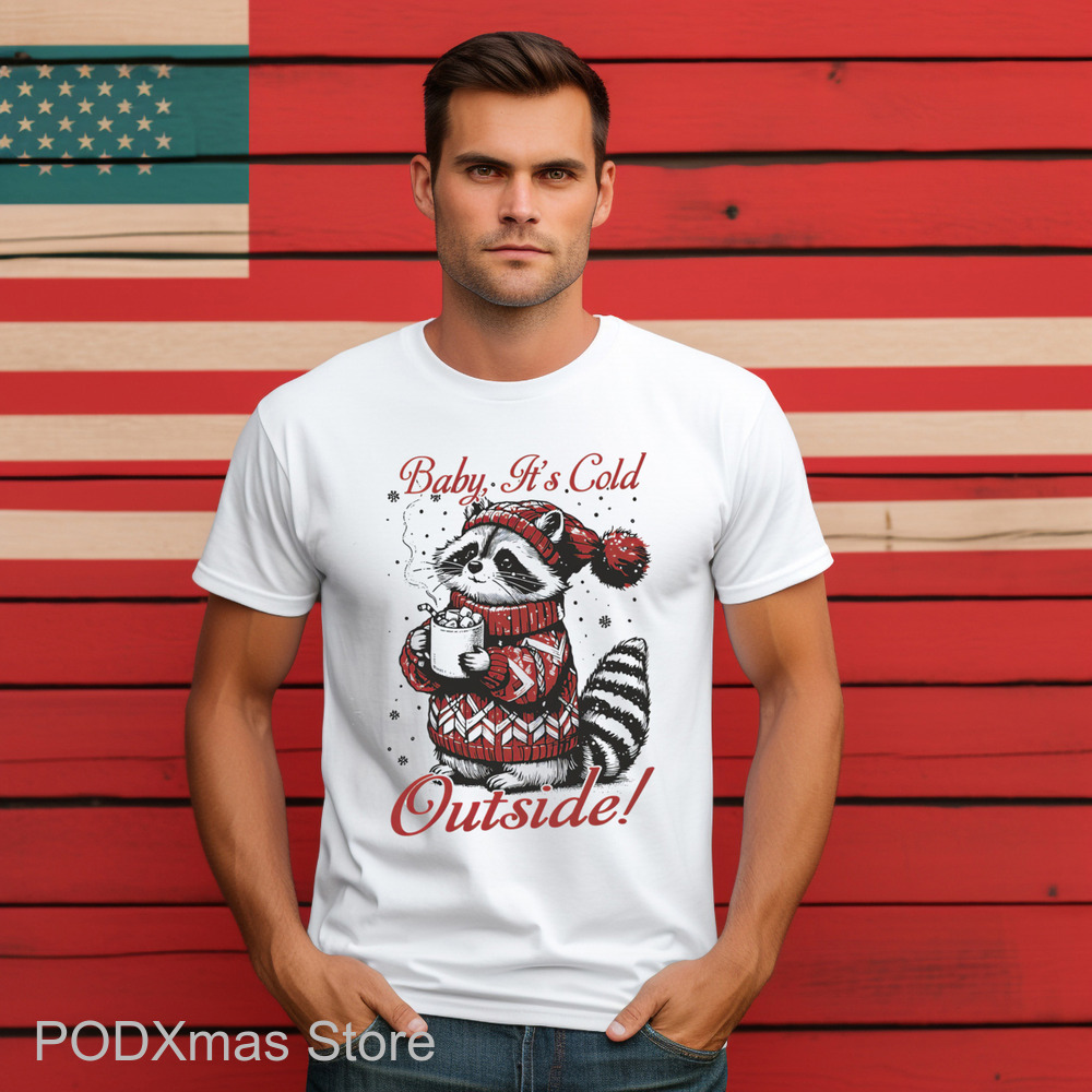 Raccoon Baby It’s Cold Outside Christmas 2024 Shirt
