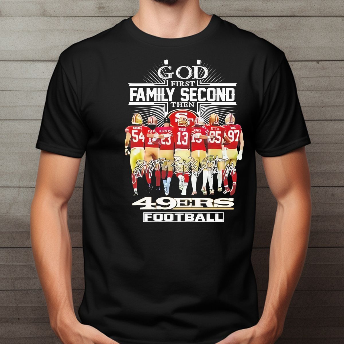 San Francisco 49ers God First Family Second Then 49ers Players Signature 2024 Shirt