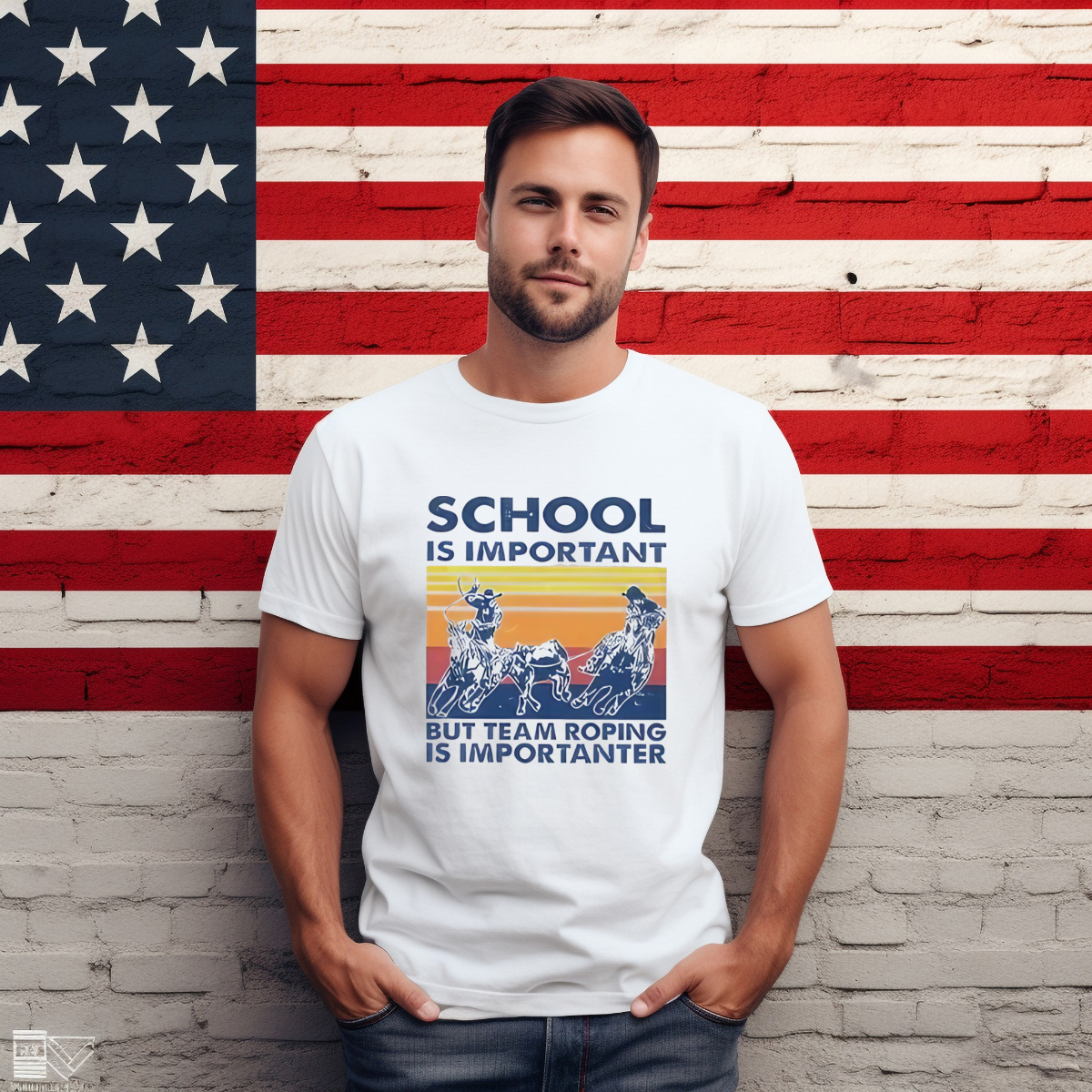 School Is Important But Team Roping Is Importanter Retro 2024 Shirt