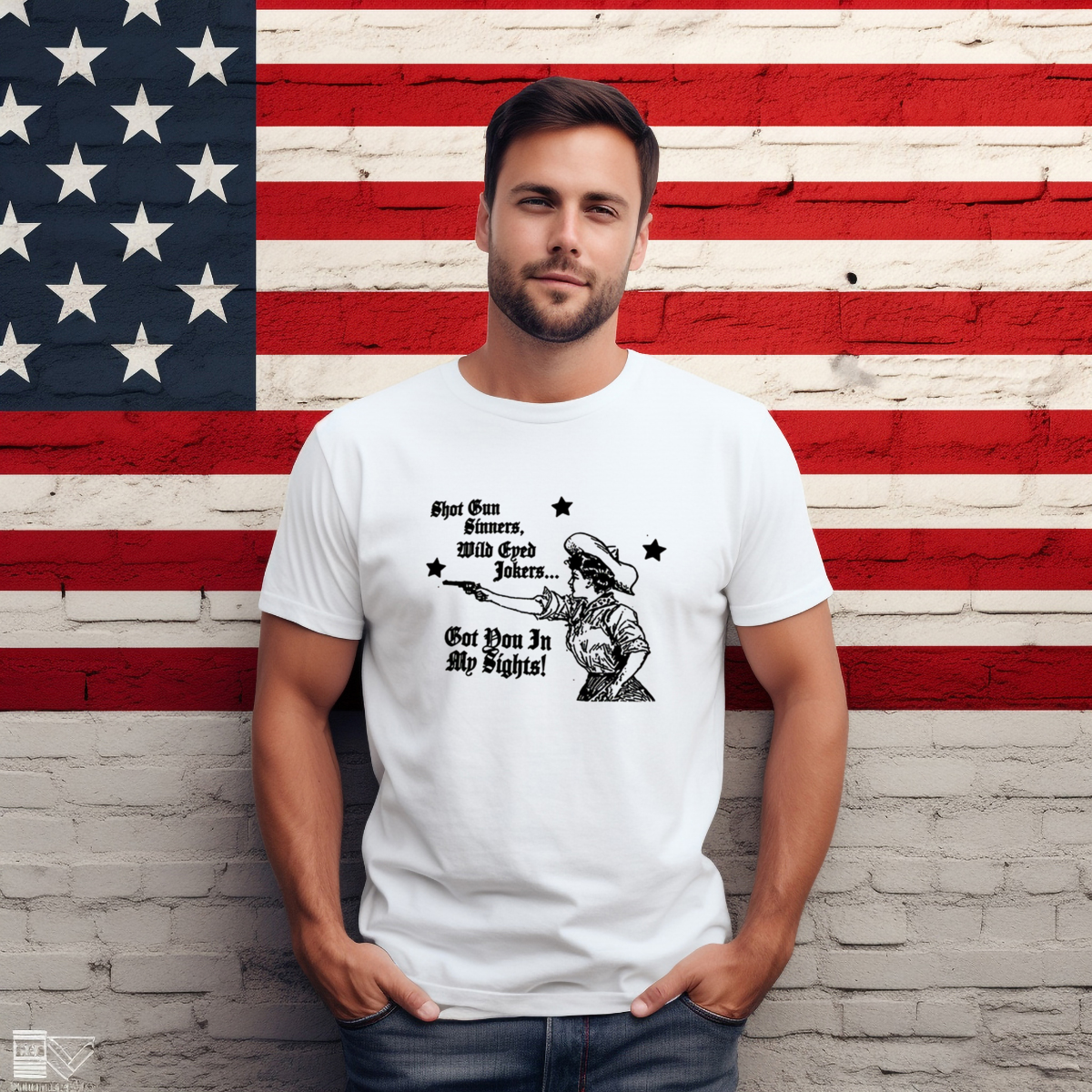 Shot Gun Sinners Wild Eyed Jokers Got You In My Sights Retro Shirt